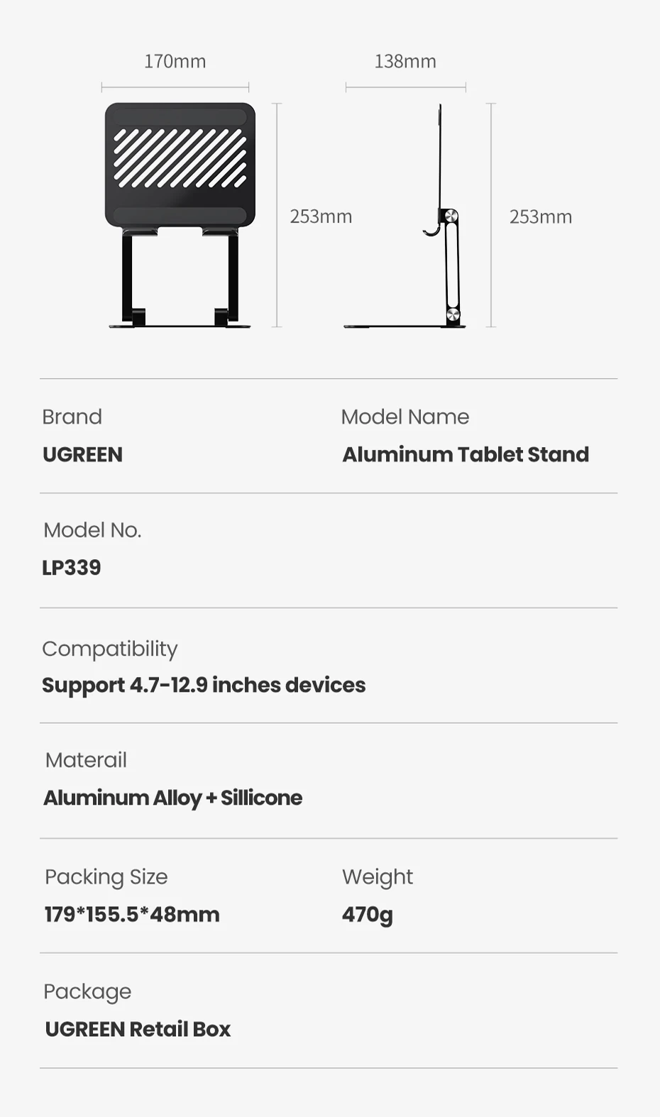 UGREEN iPad pro 12,9 dibujo de soporte está diseñado para ser simple y elegante. Se adapta perfectamente a su hogar y oficina.