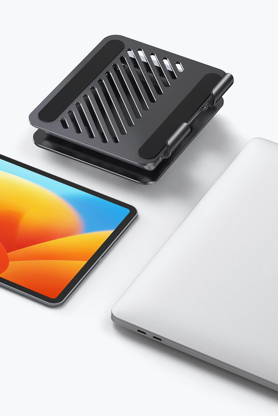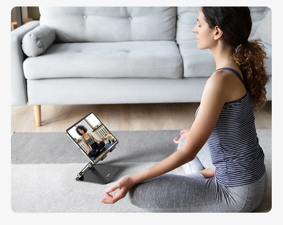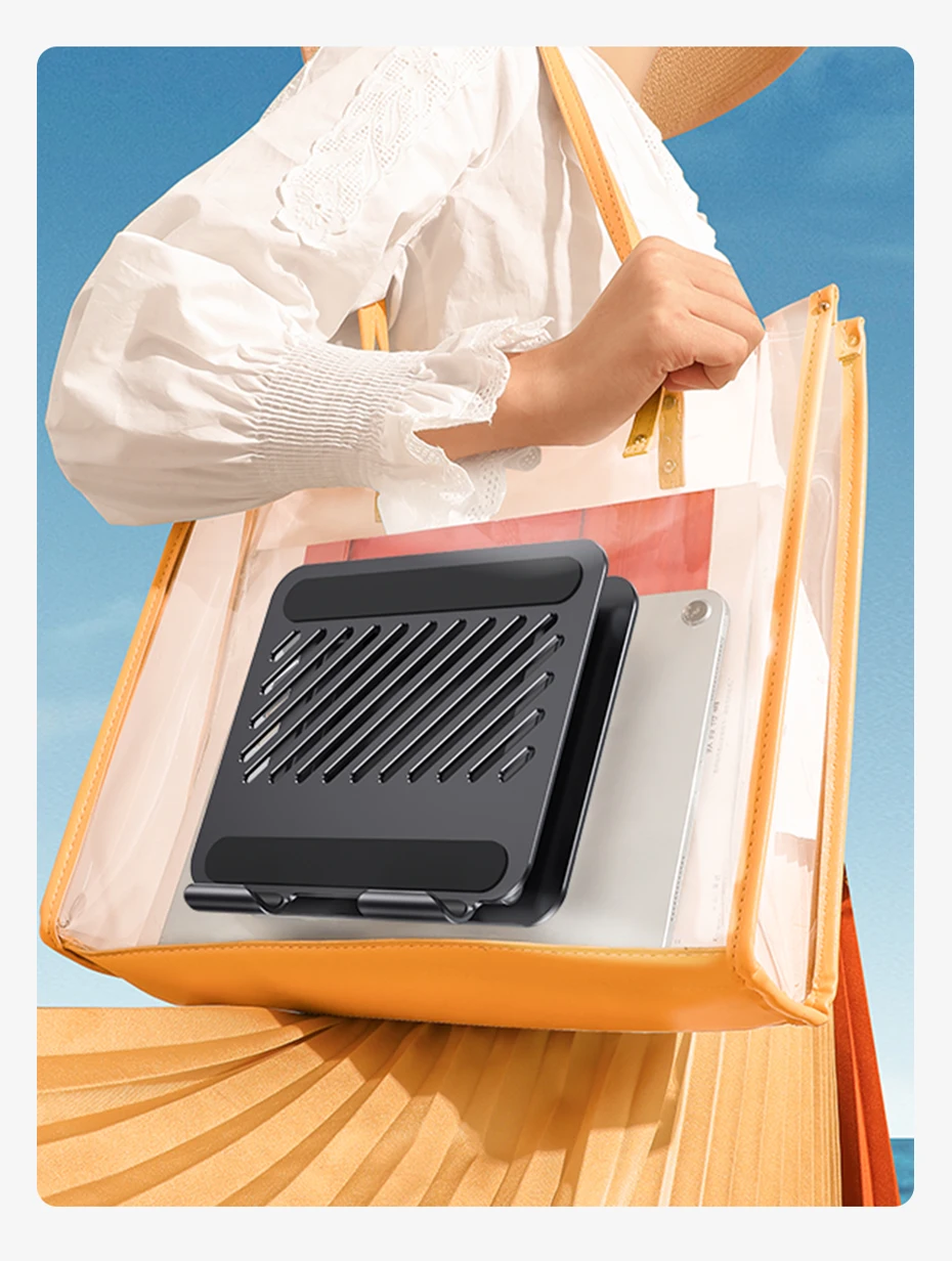 Este soporte de escritorio para tableta se puede plegar completamente en un tamaño de bolsa. El soporte para iPad mini ocupa poco espacio cuando se almacena, es fácil de llevar en la bolsa, un complemento perfecto para viajes o viajes de negocios.