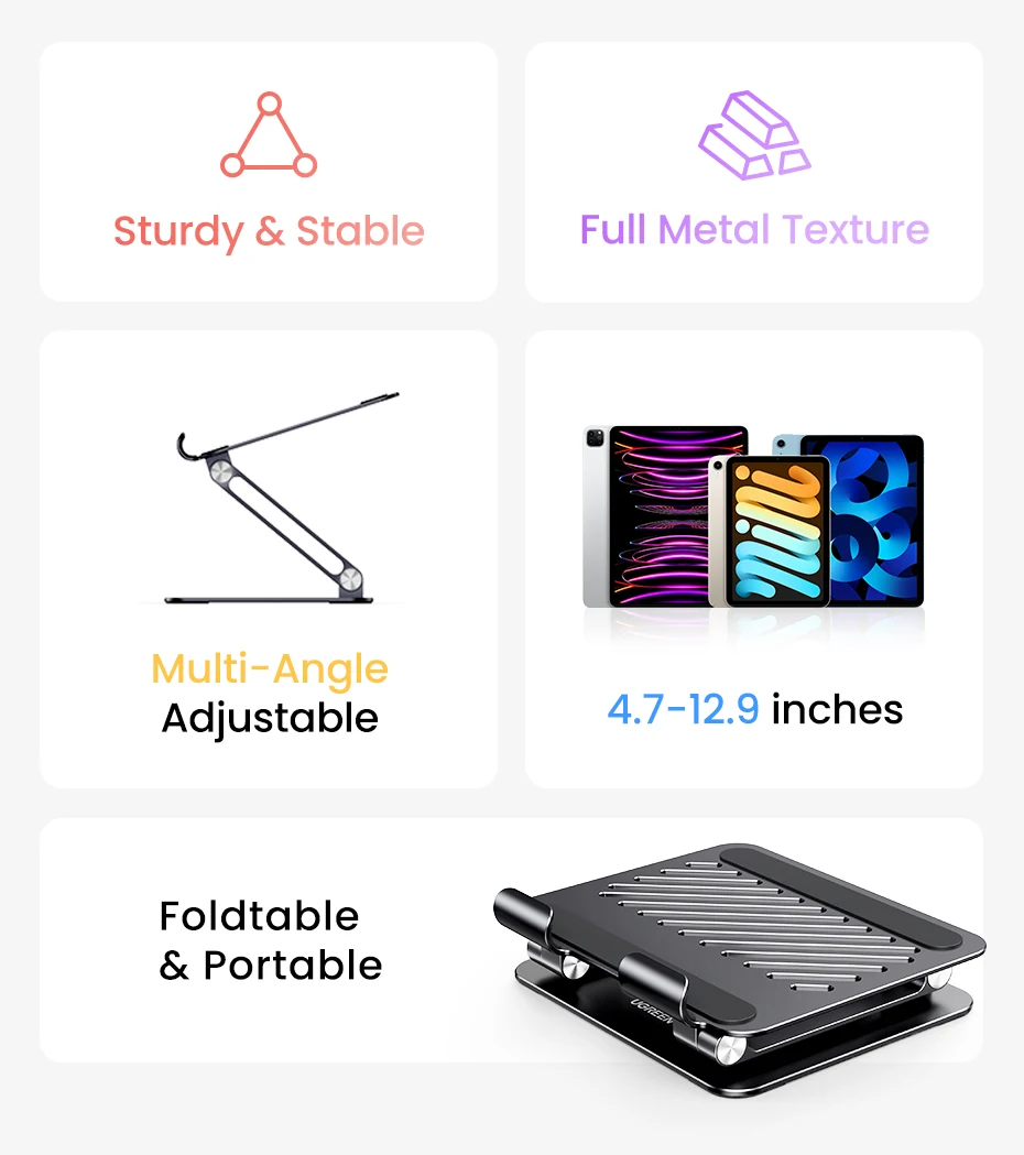 Soporte para tableta UGREEN que se adapta perfectamente a dispositivos de hasta 12,9 pulgadasTamaño, como iPad Air 2 3 4, iPad Pro 2021, iPad Mini2 3 4 5, Surface Pro 7 6X, Surface Go, Nintendo Switch, iPhone13 12 11 Pro Max, XR XS,iPhone 8 Plus 6 7 6 S, Samsung Galaxy Tab A A7 S7 S6 S5e S4, etc.