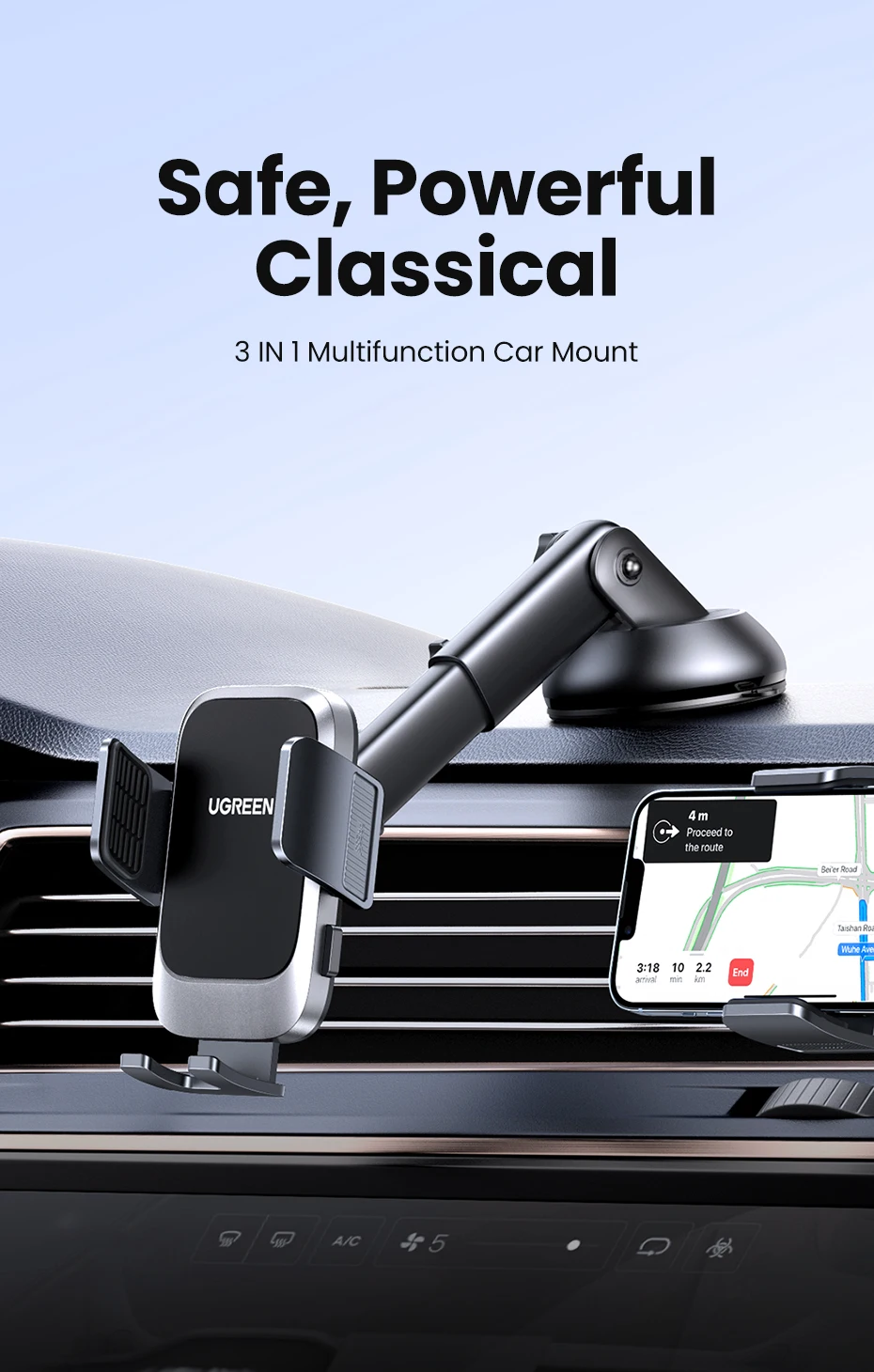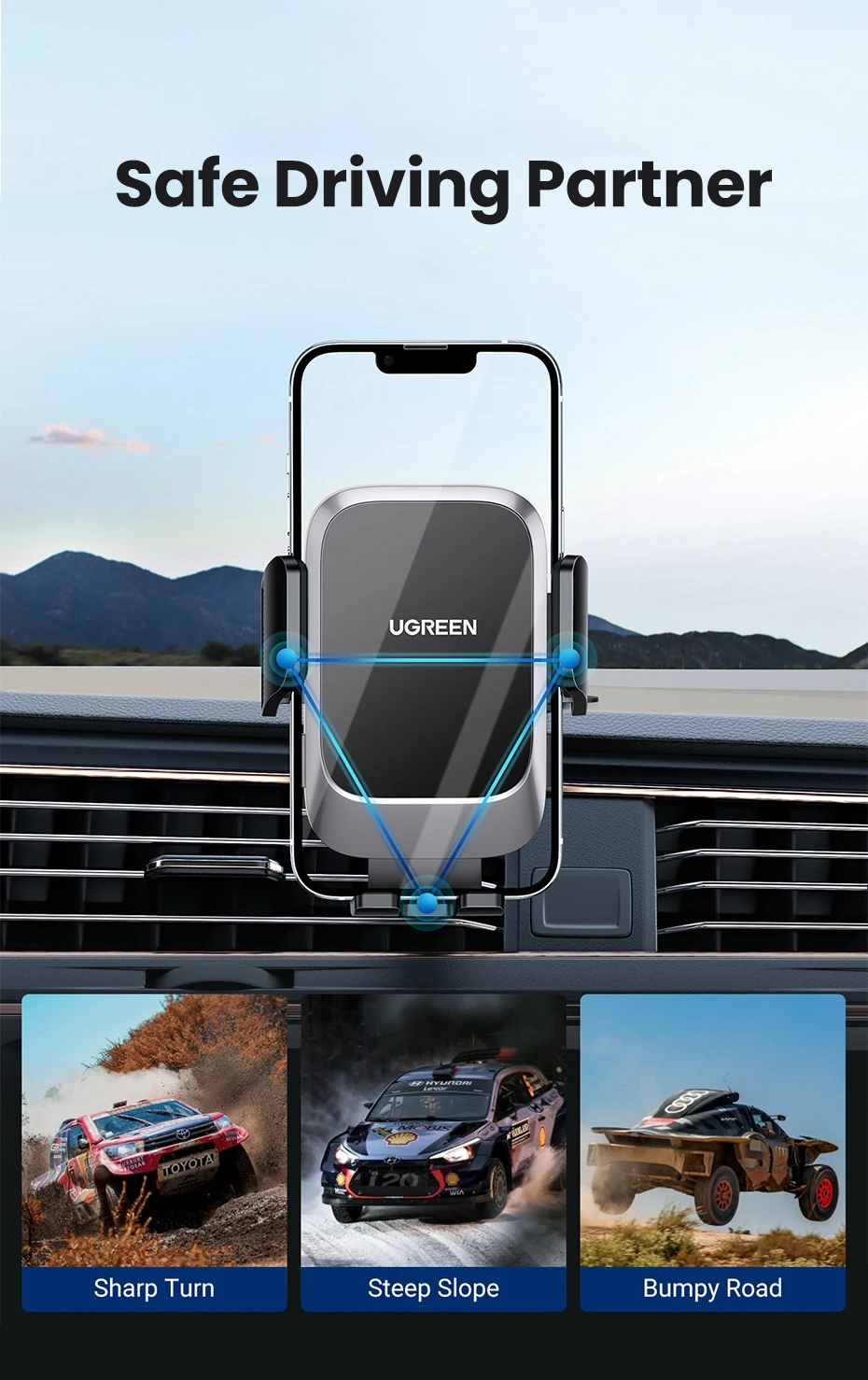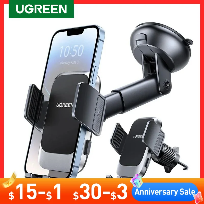 Comprar Ugreen-Soporte de teléfono para coche, rejilla de ventilación y salpicadero de gravedad, 3 en 1, para iPhone 14, 13, 12 Pro, Xiaomi, Samsung