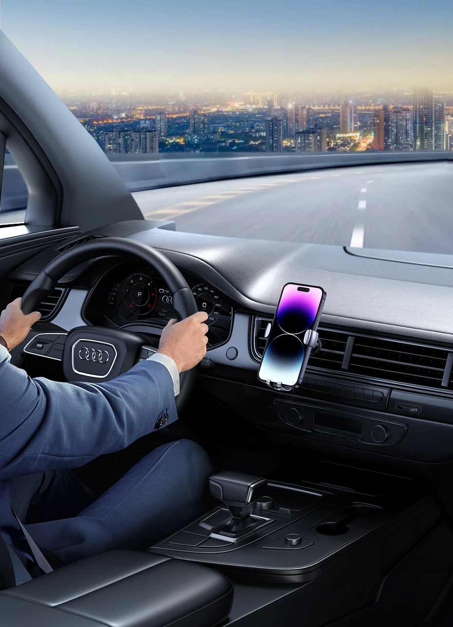 (1) el soporte bloquea el teléfono automáticamente mediante conexión por gravedad. Por lo tanto, solo admite modo vertical