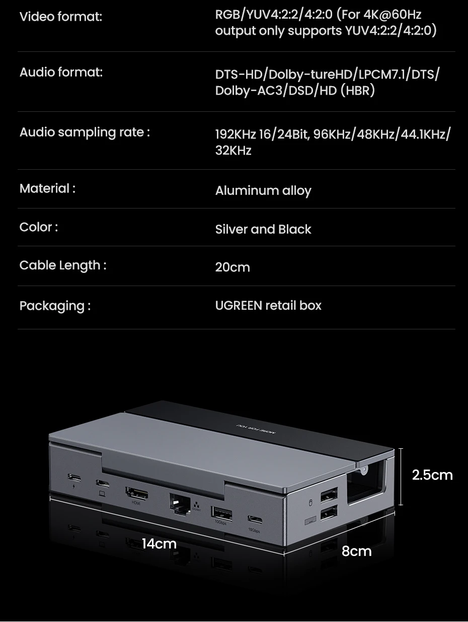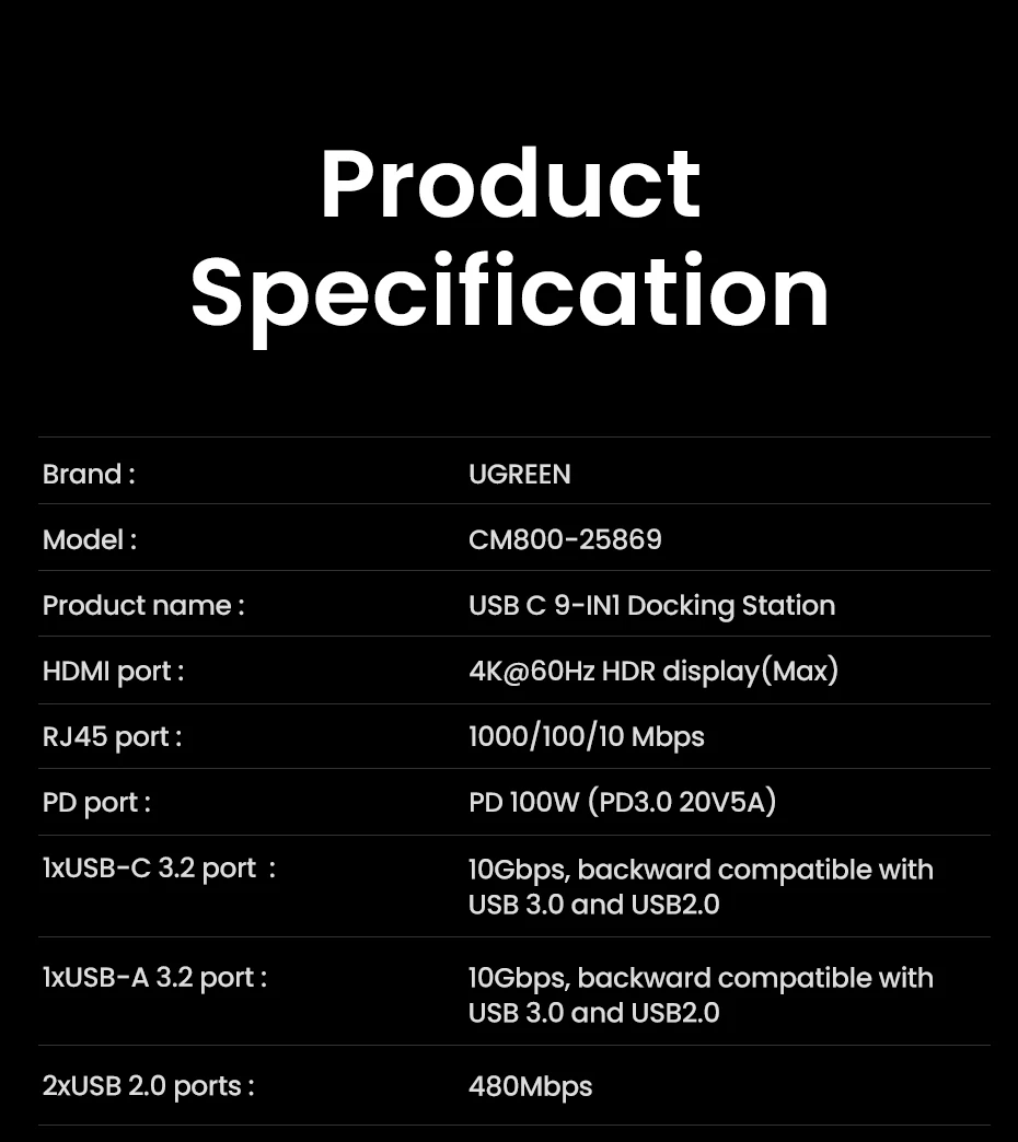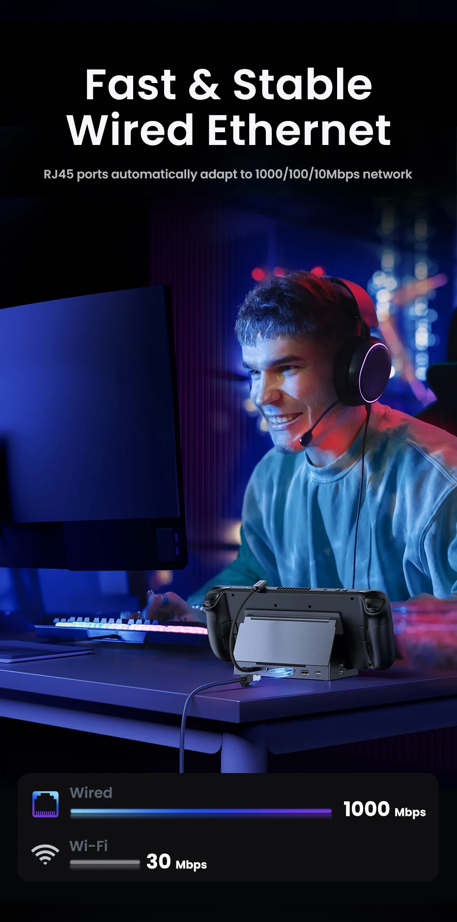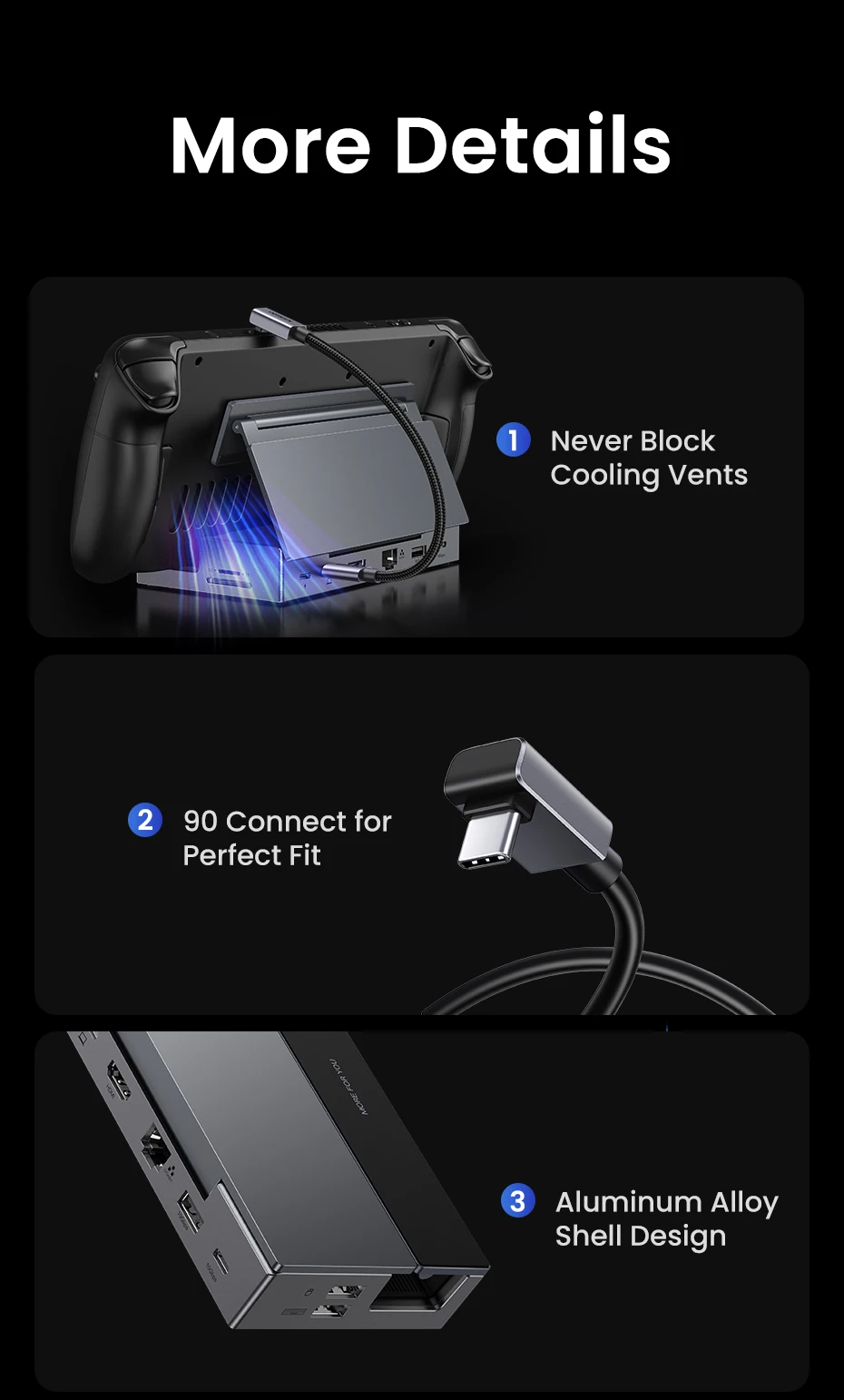 Comprar UGREEN-Steam Deck Dock, 4K, 60Hz, 9 puertos, RJ45, PD100W, HUB USB C, Compatible con Steam Deck, ROG, Ally LEGION Go, iPhone 15 Pro/Pro Max