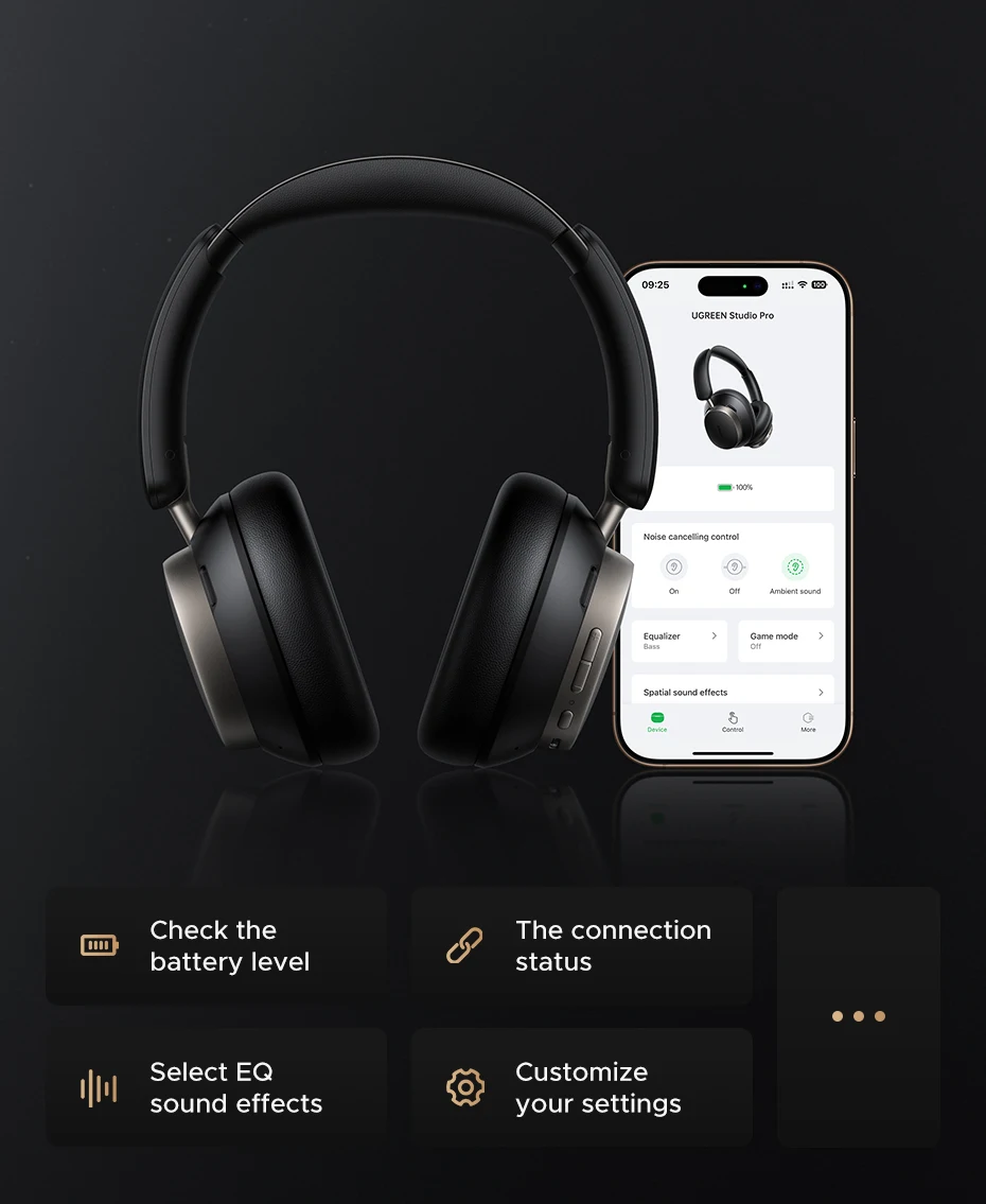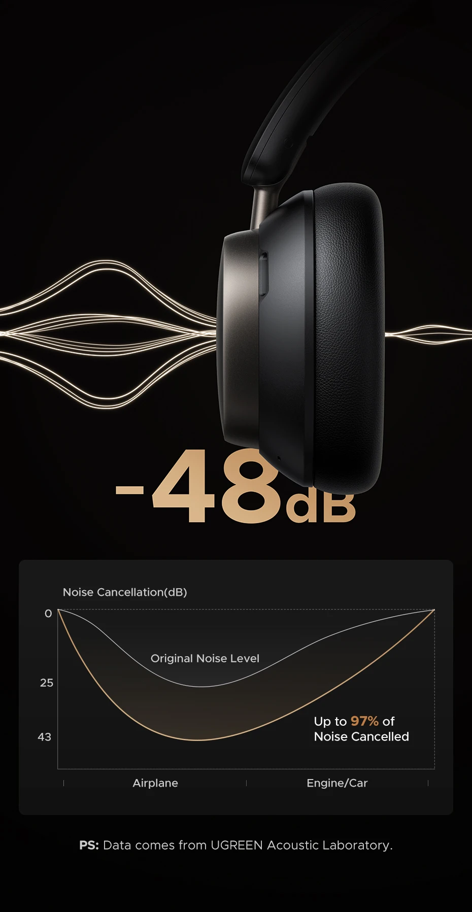 Comprar UGREEN Studio Pro 48dB ANC auriculares inalámbricos sobre la oreja auriculares Bluetooth cancelación activa de ruido alta resolución LDAC 120h tiempo de reproducción