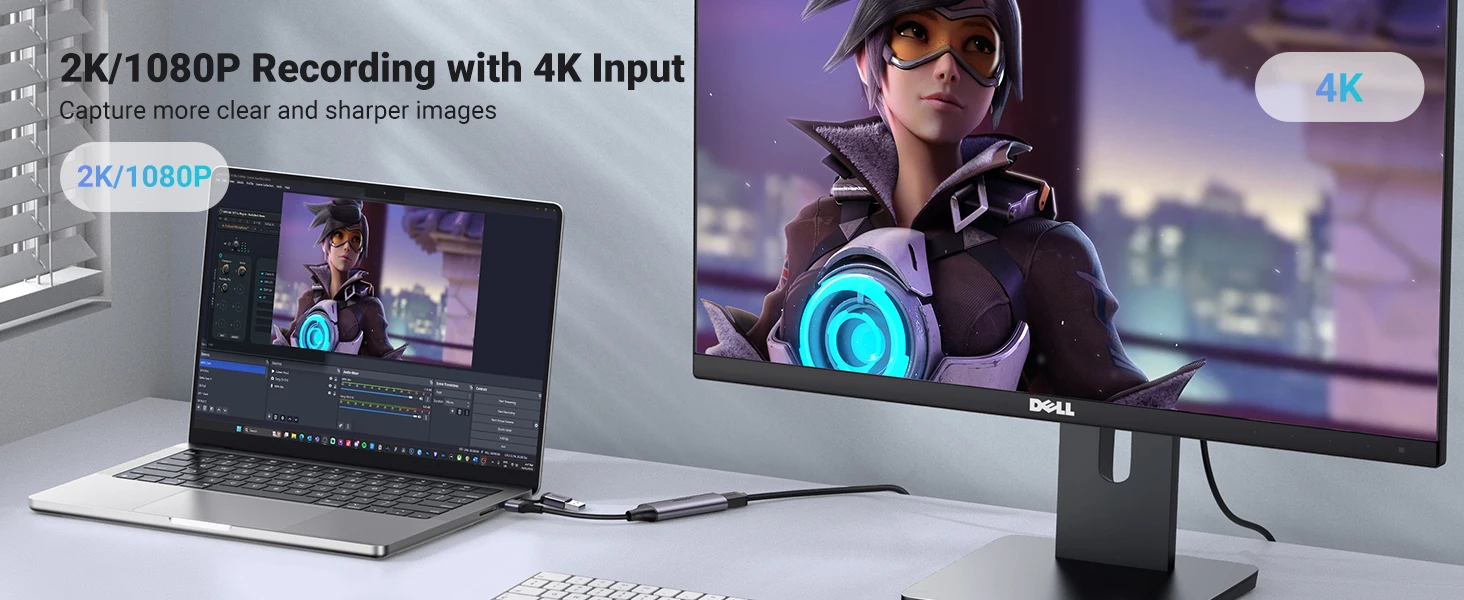 R: Para la fuente de entrada, la resolución máxima y la frecuencia de actualización son 4K @ 60Hz. Y para la salida (grabación/captura/transmisión), es 2K @ 30Hz y 1080P @ 60Hz.
