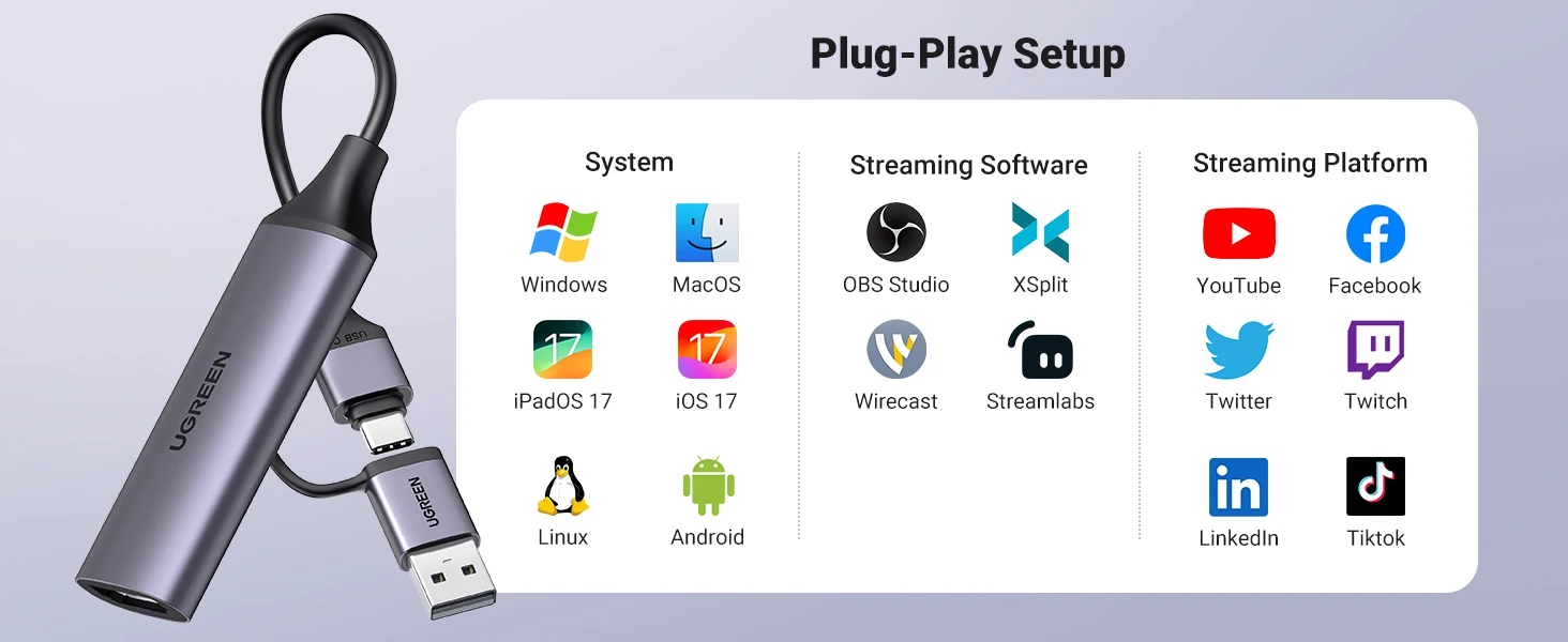 Comprar UGREEN-tarjeta de captura de vídeo HDMI, 1080P @ 60Hz, HDMI a USB tipo C, caja de grabación de vídeo para PC, ordenador, cámara, grabación en vivo