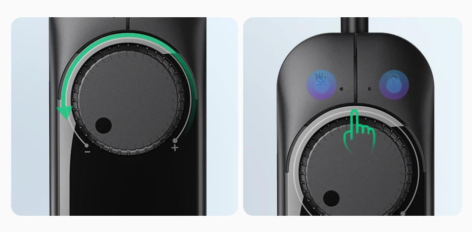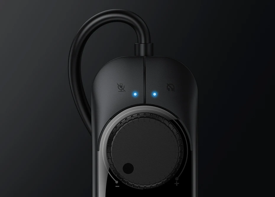 - Indicator light: Two blue indicator lights (one for headphone and one for micphone)