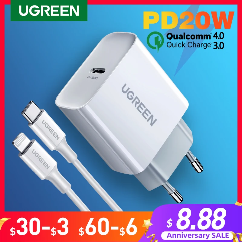 ③UGREEN Quick Charge 4.0 3.0 QC PD Charger 20W QC4.0 QC3.0 USB Type C Fast Charger for iPhone 13 12 Xs 8 Xiaomi Phone PD Charger