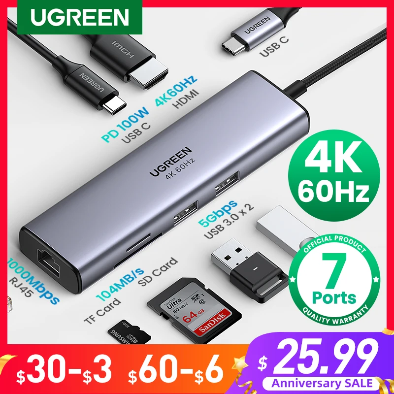 Comprar Ugreen-tienda completa de 2022 a 3,28, venta por aniversario, 4,1: 30-3 $, 60-6 $, añadir al carrito y obtener más cupones