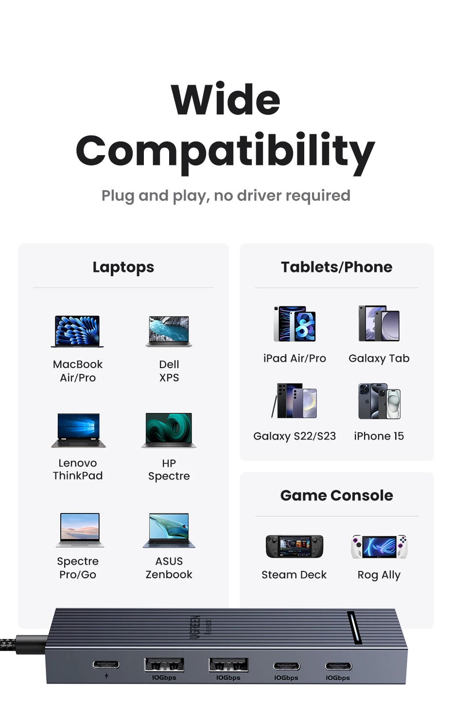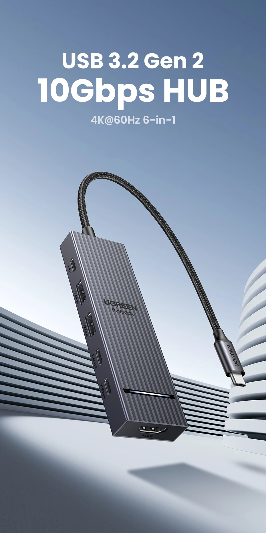 Comprar UGREEN USB C HUB 10Gbps 4K60Hz HDMI USB3.2 PD100W USB divisor para ordenador portátil Macbook Pro Air iPad teléfono Android estación de acoplamiento