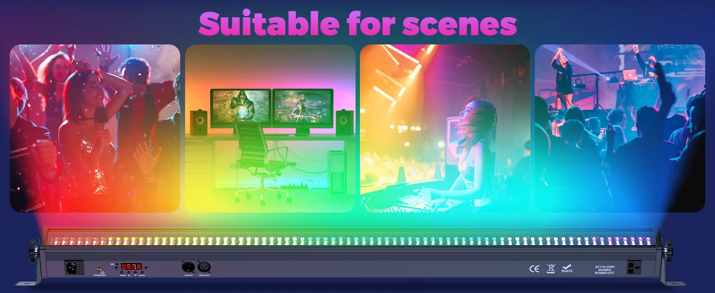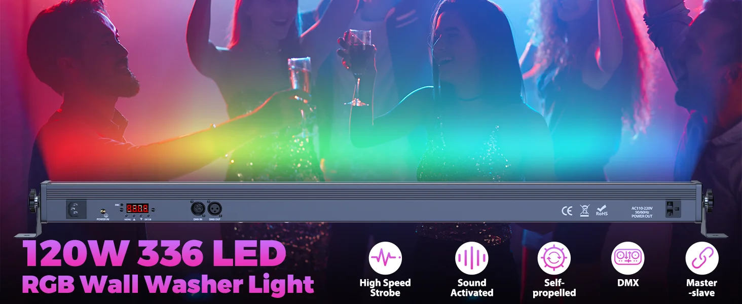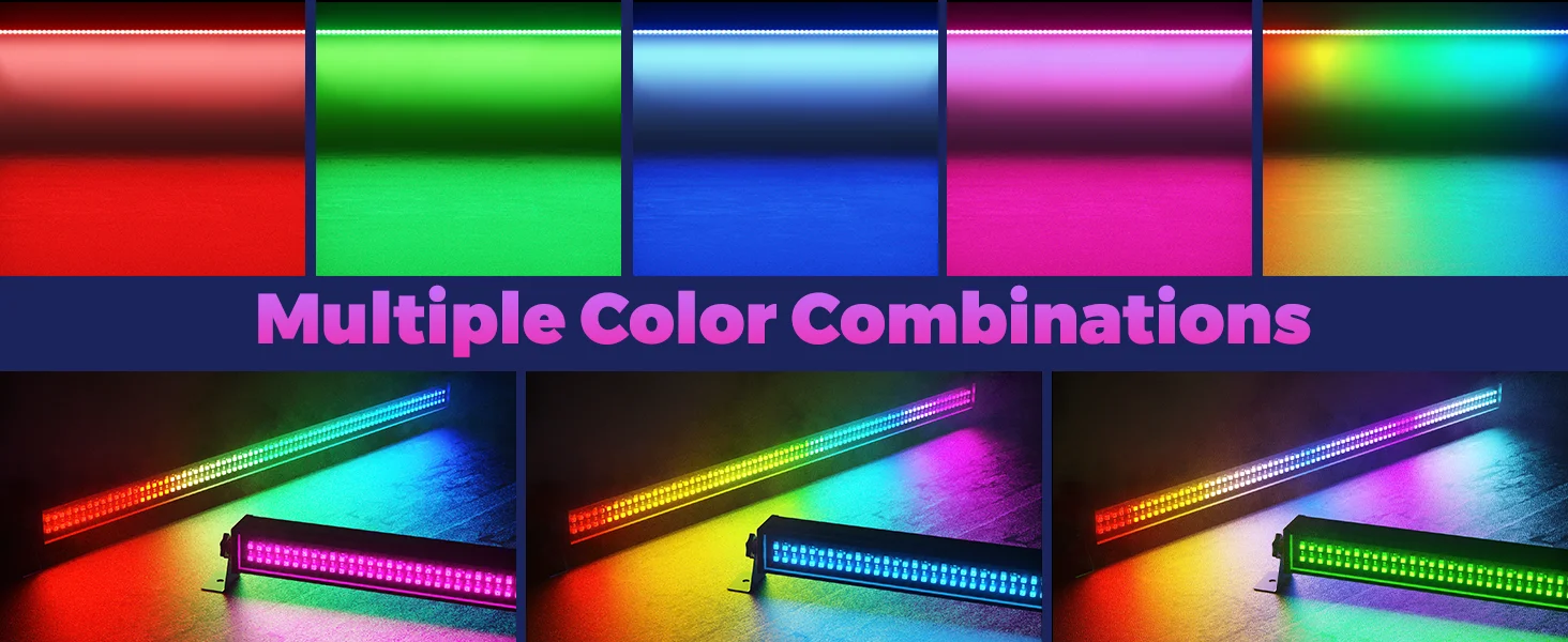1.Consta de 168 LED RGB SMD 5050 de 0,5 W y 168 LED de luz blanca fría de 0,5 W y 5730, proporciona una gran salida de luz, por lo que está diseñado específicamente para escenarios grandes, discotecas, eventos en vivo y turismo.