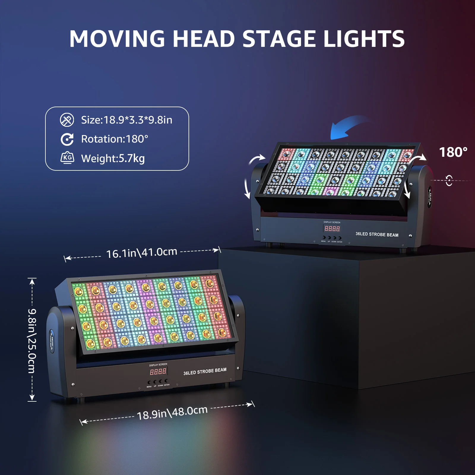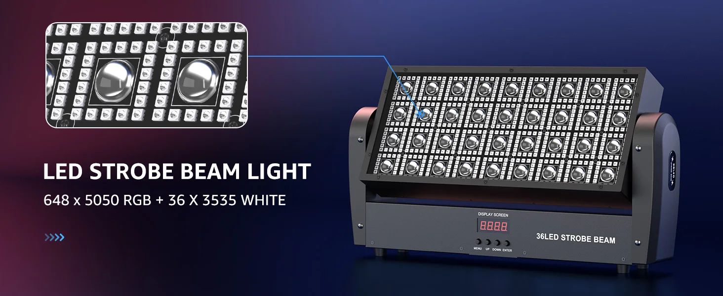 U'King 2 piezas barra de luz de escenario con cabezal móvil cuadrado de 200 W con 36 piezas de luz blanca cálida y 648 piezas 5050RGB LED RGBW 4 en 1 haz estroboscópico