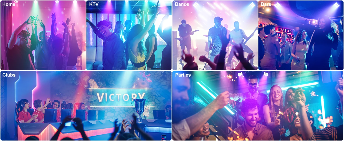 5.Ampliamente utilizado: adecuado para fiestas, cantantes, actuaciones móviles, entretenimiento familiar, salas de conferencias, estudios y otras escenas.