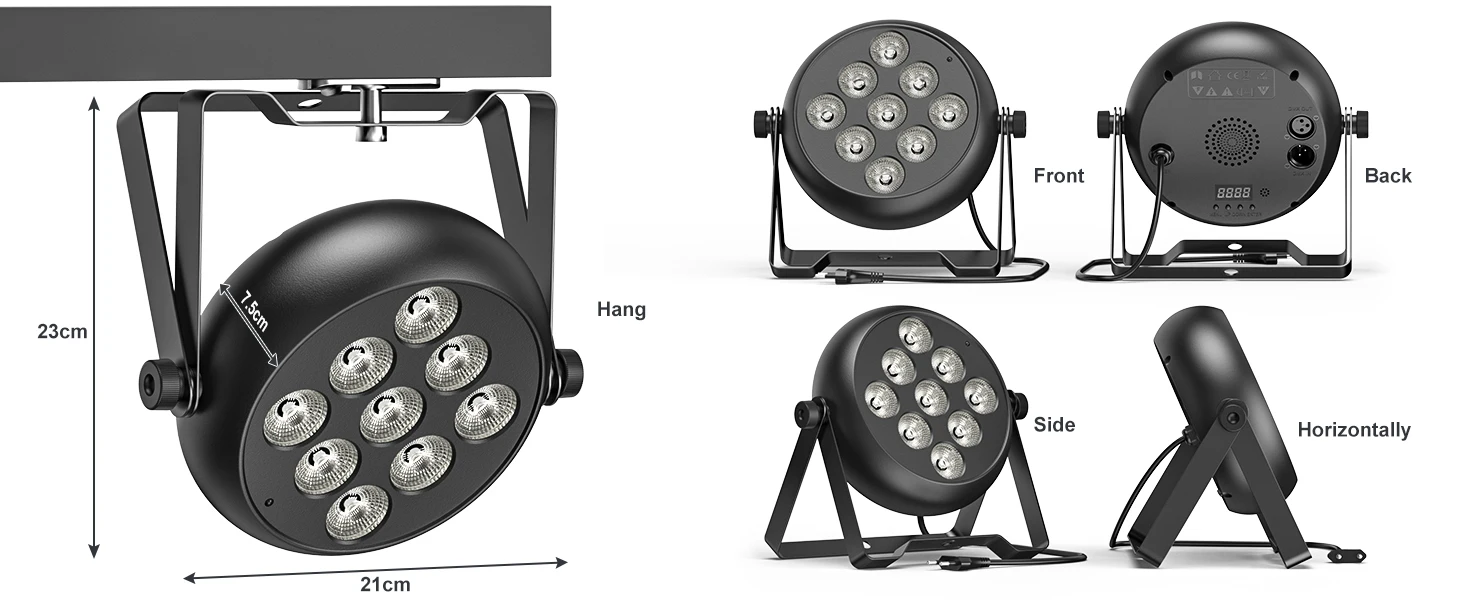 Fuente de luz: 9 cuentas LED RGBW de 4 W.