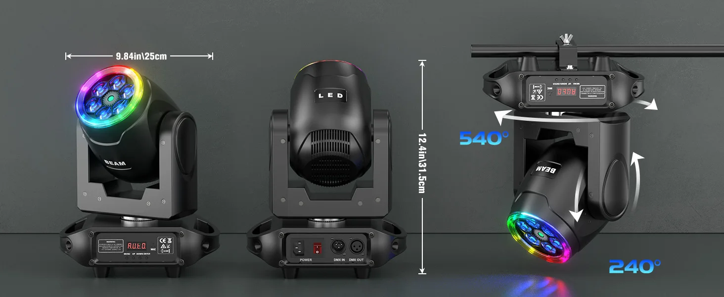 1.【Potentes efectos de haz】Con alta precisión y versatilidad, el haz en forma de espada crea impresionantes efectos de iluminación que se pueden cambiar fácilmente entre modos fijos y dinámicos. Añade un toque de emoción a cualquier evento o actuación.