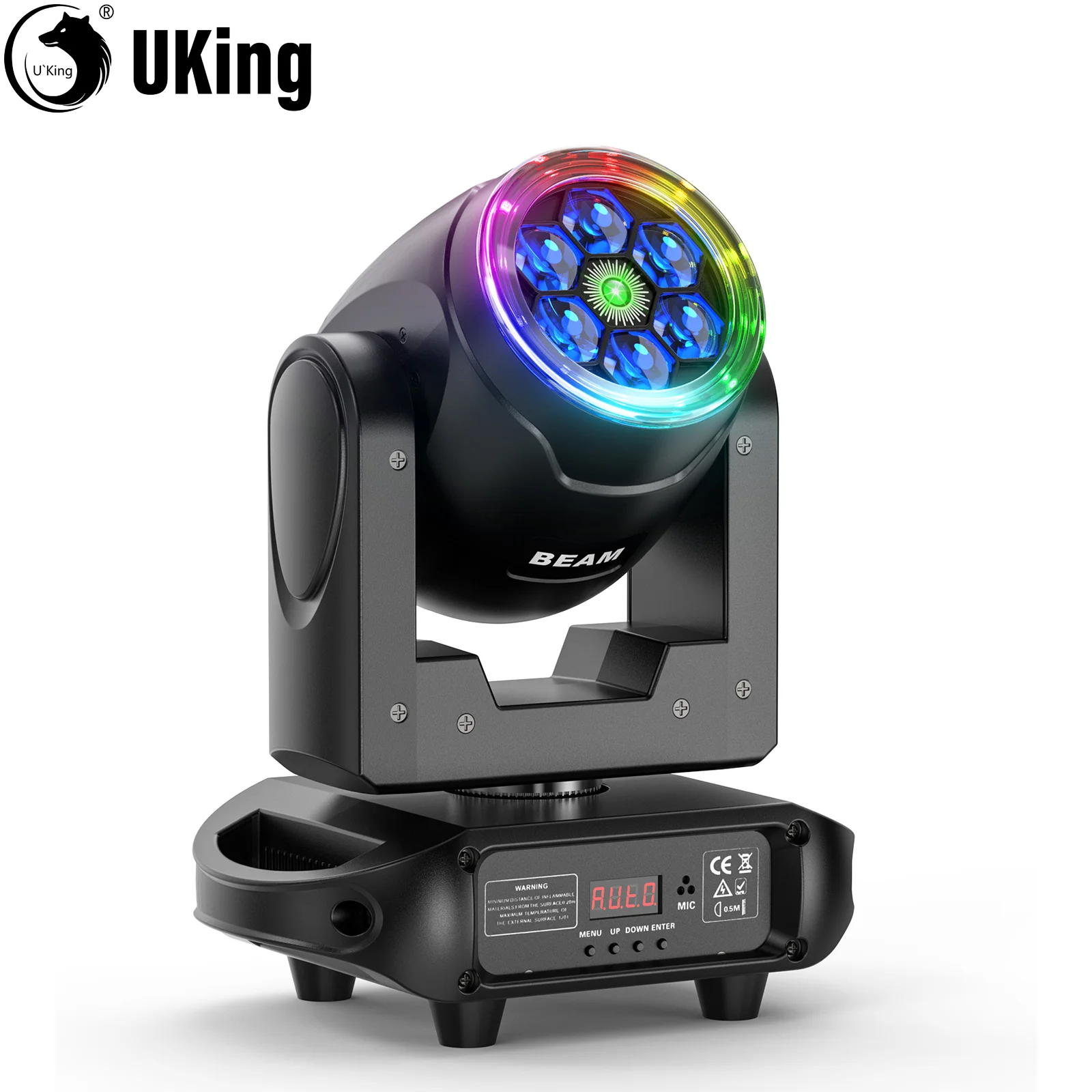 U'King 90W RGBW Luces con cabezal móvil Rotación de 360 ° Halo Strip Ojo de abeja Láser verde DMX