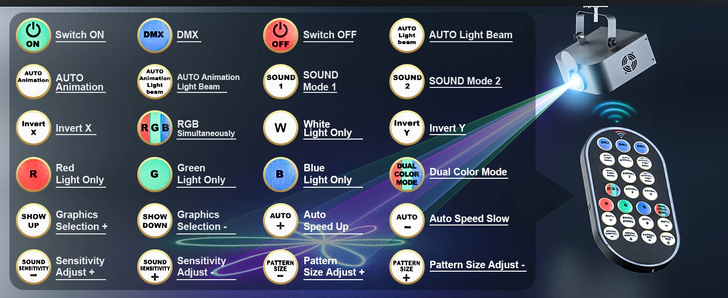 2.Fácil de controlar.Activación de sonido, AUTO-BEAM, animación automática, DMX, maestro/esclavo, control de PC, adaptación a las necesidades de diferentes lugares.