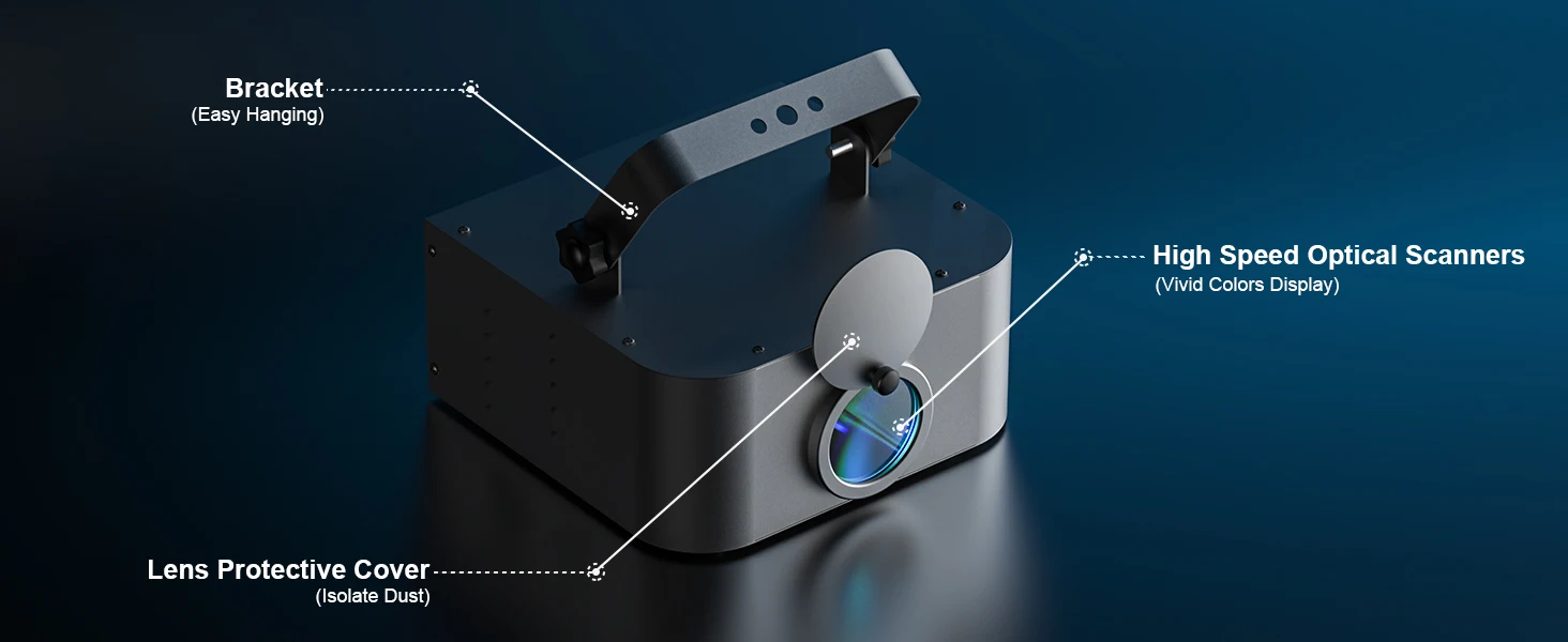 Función: El láser de animación, con escáner óptico de alta velocidad, puede crear gráficos de animación, cientos de patrones de visualización de haz y visualización gráfica, y tiene las funciones de activación automática y automática, rotación y rotación de color.Movimiento, rotación, zoom (+/-), dibujo y velocidad, etc.