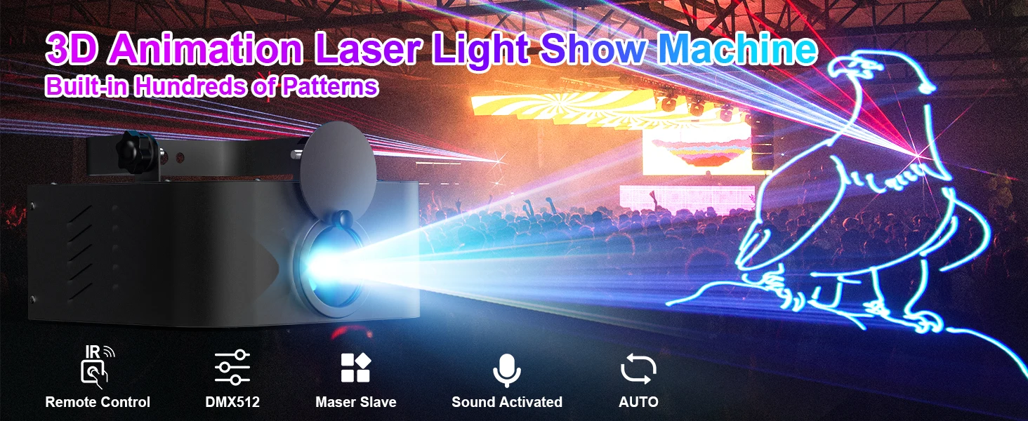 Comprar U'King DJ luz láser con control remoto efecto de animación 3D iluminación láser de escenario DMX512 luz de fiesta para DJ Fiesta de discoteca