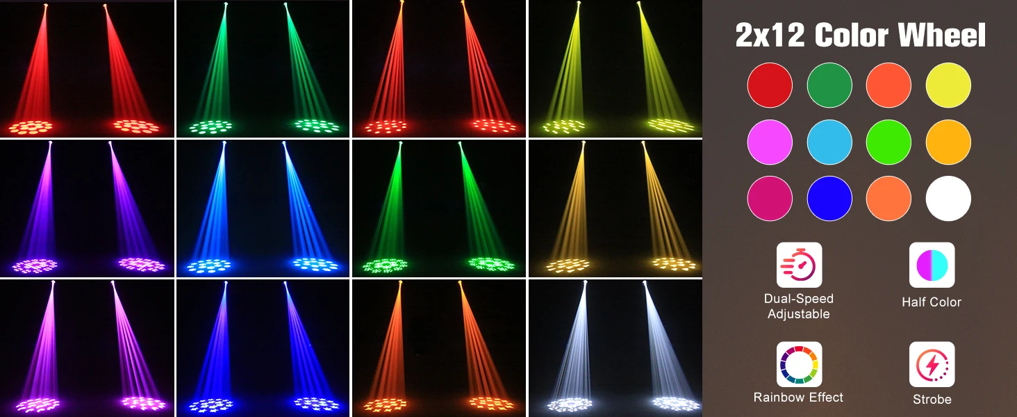 Color wheel: Dual-head 11+1 color wheel, forward and reverse rotation, support Half-color effect