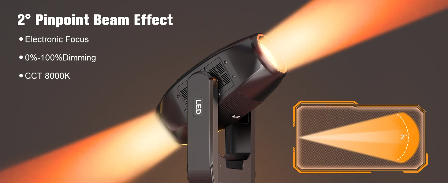 Equipped with two advanced 100W modular light sources, this fixture delivers exceptional brightness and supports 0–100% linear dimming for precise intensity adjustment. With pure color temperature and a powerful beam, it meets diverse stage lighting demands, creating stunning visual effects.