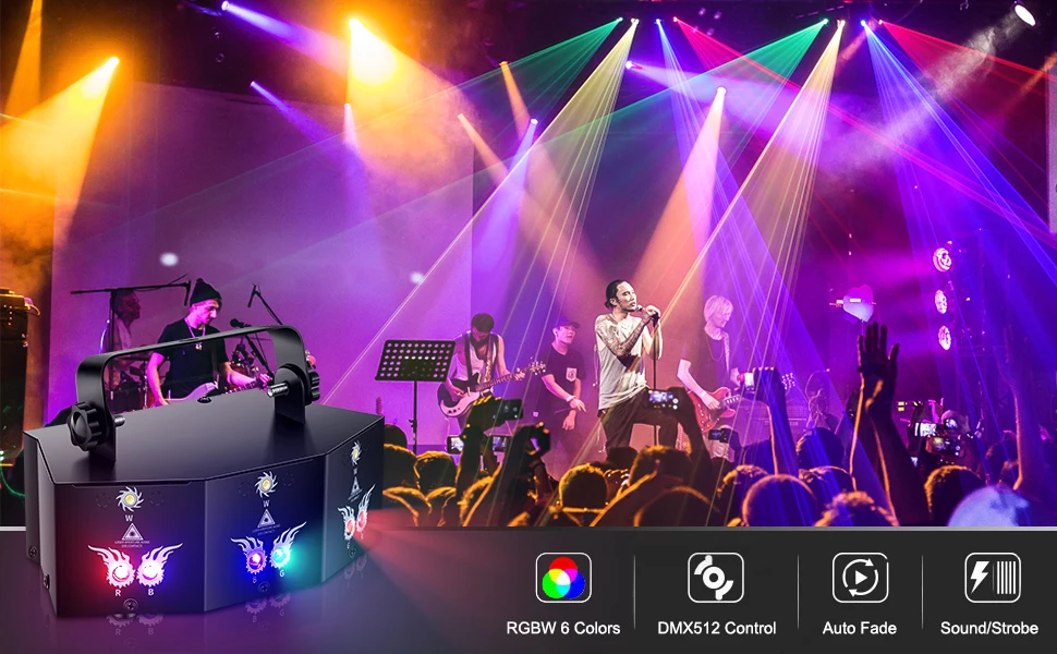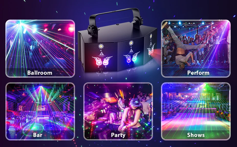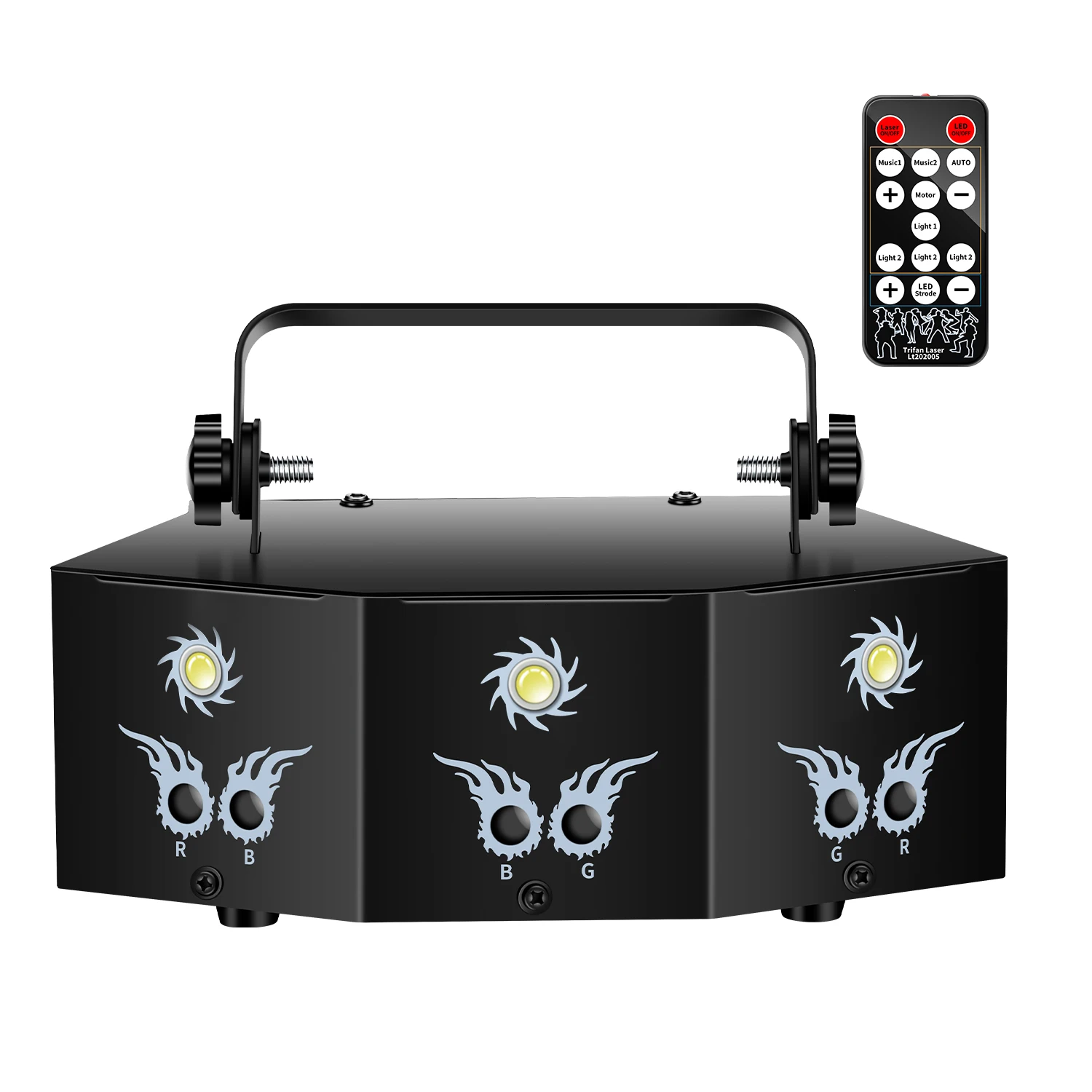 Comprar U'King-luces de fiesta con 9 lentes, luces LED RGB para discoteca, escenario, luz láser con sonido activado y Control remoto para fiesta, Bar, espectáculo en vivo