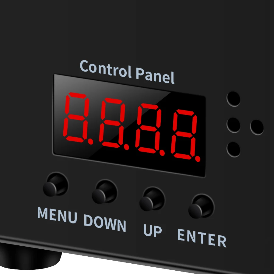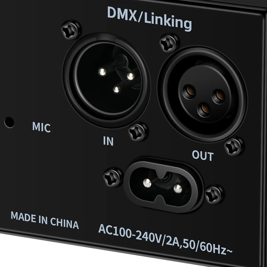 Cuatro modos de trabajo: AUTO, Sonido activo, DMX512, Maestro/Esclavo