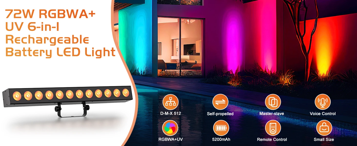 Comprar U'King-luces LED de pared RGBWA + UV, 12x6W, con batería de 5200MA, barra de luz de escenario lineal DMX512 para construcción, iglesia, tienda, fiesta