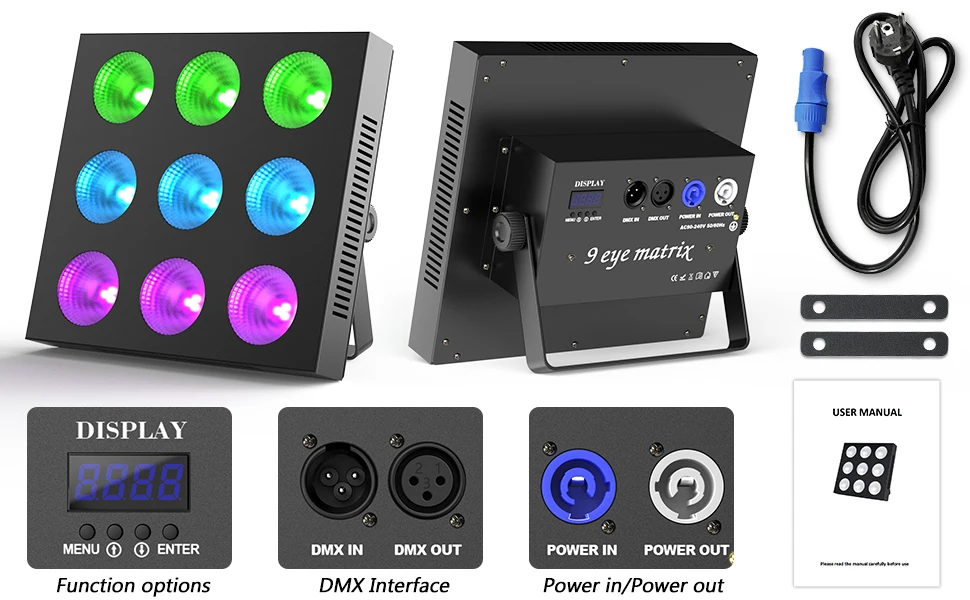 La matriz de 9 ojos utiliza 9 LED RGBW de 12 W para producir una luz colorida.Es un equipo de iluminación totalmente funcional y confiable.Es adecuado para representaciones teatrales, lugares de entretenimiento, lugares para banquetes y otras necesidades de iluminación a pequeña escala.A través de modos de control flexibles y configuraciones de canales, se pueden lograr efectos de iluminación diversificados y personalizados.