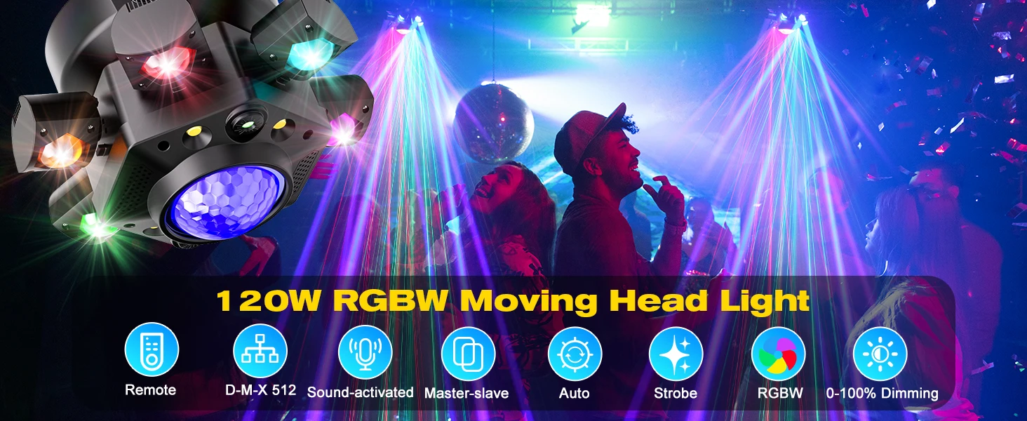 U'King 120W luz de cabeza móvil de seis brazos con efecto de rotación de bola mágica DMX RGBW haz LED luz estroboscópica efecto de escenario para fiesta