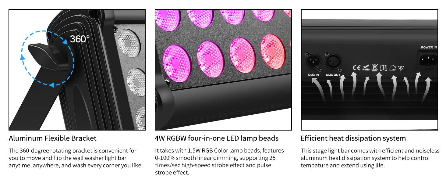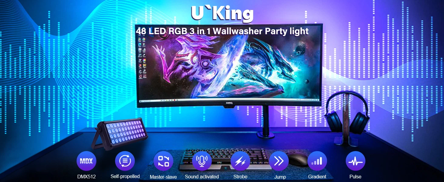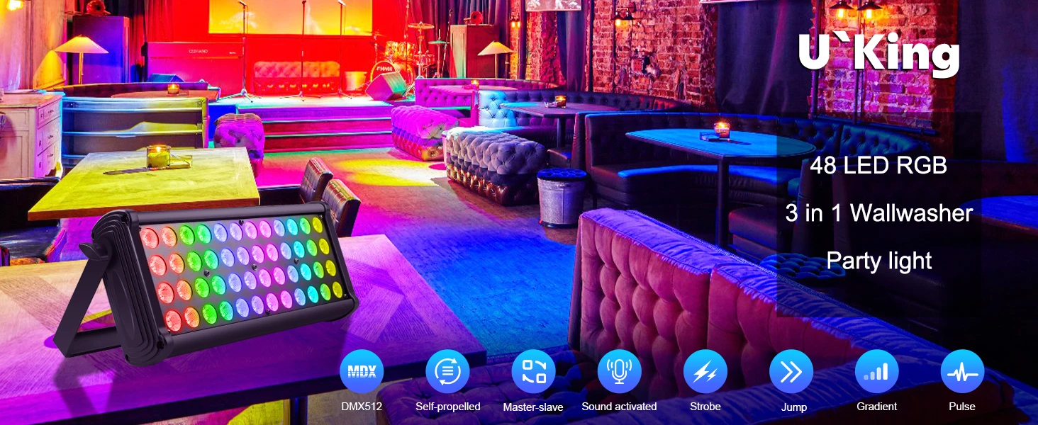 U`King 80W Plaza luz de lavado de pared 48LED RGB DJ luces mezcla de colores efecto arcoíris aspectos destacados para exteriores edificios