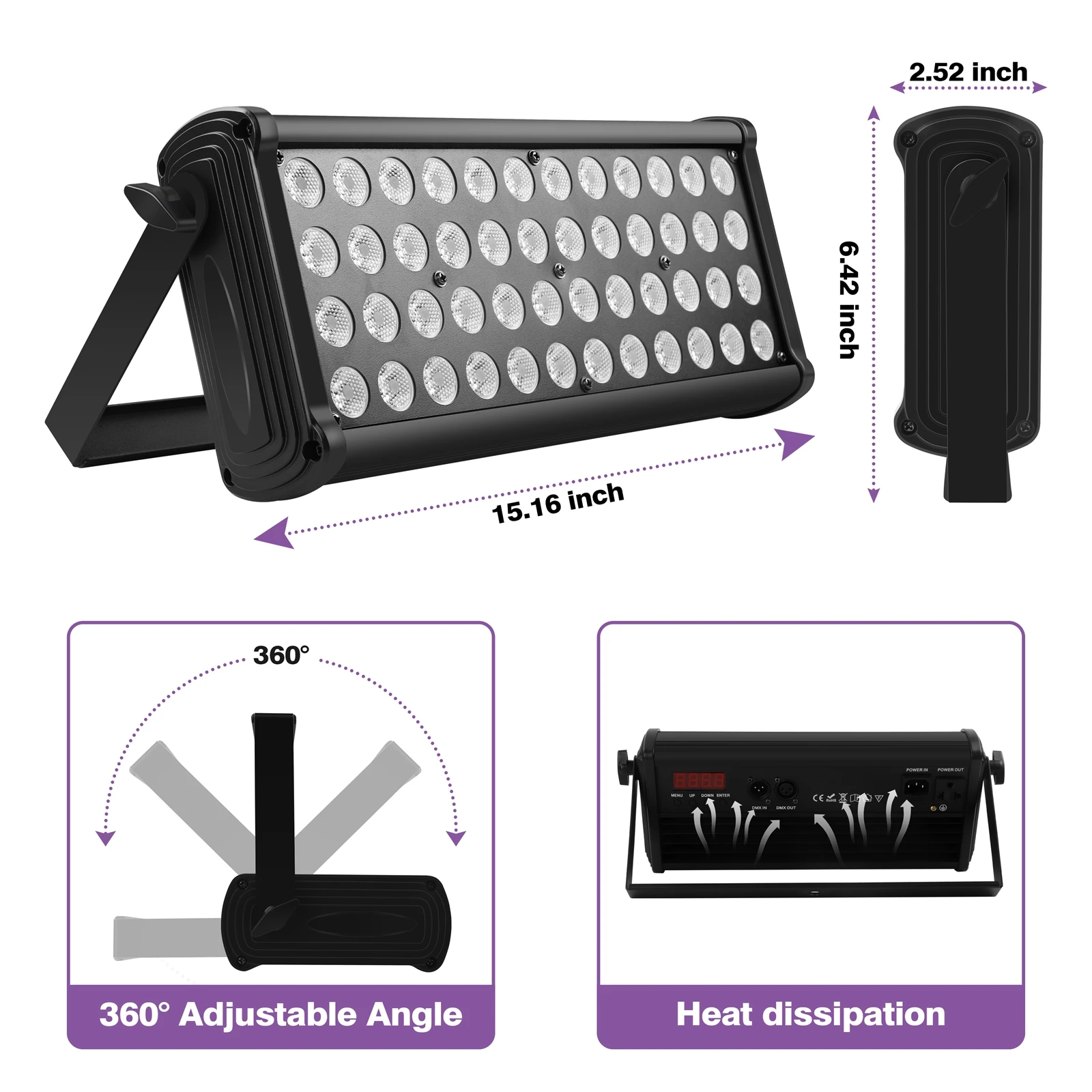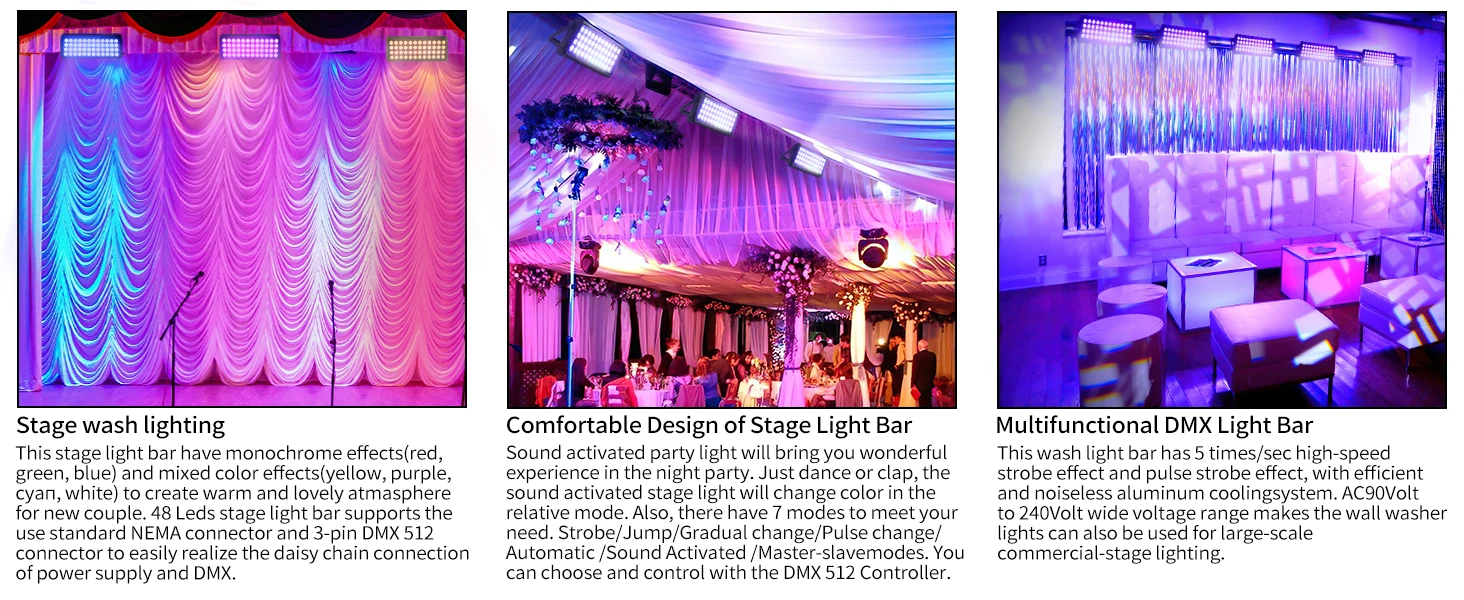 Comprar U'King-luz cuadrada para lavado de pared, 80W, 48LED, RGB, luces para DJ, mezcla de colores, efecto arcoíris, resaltajes para exteriores edificios