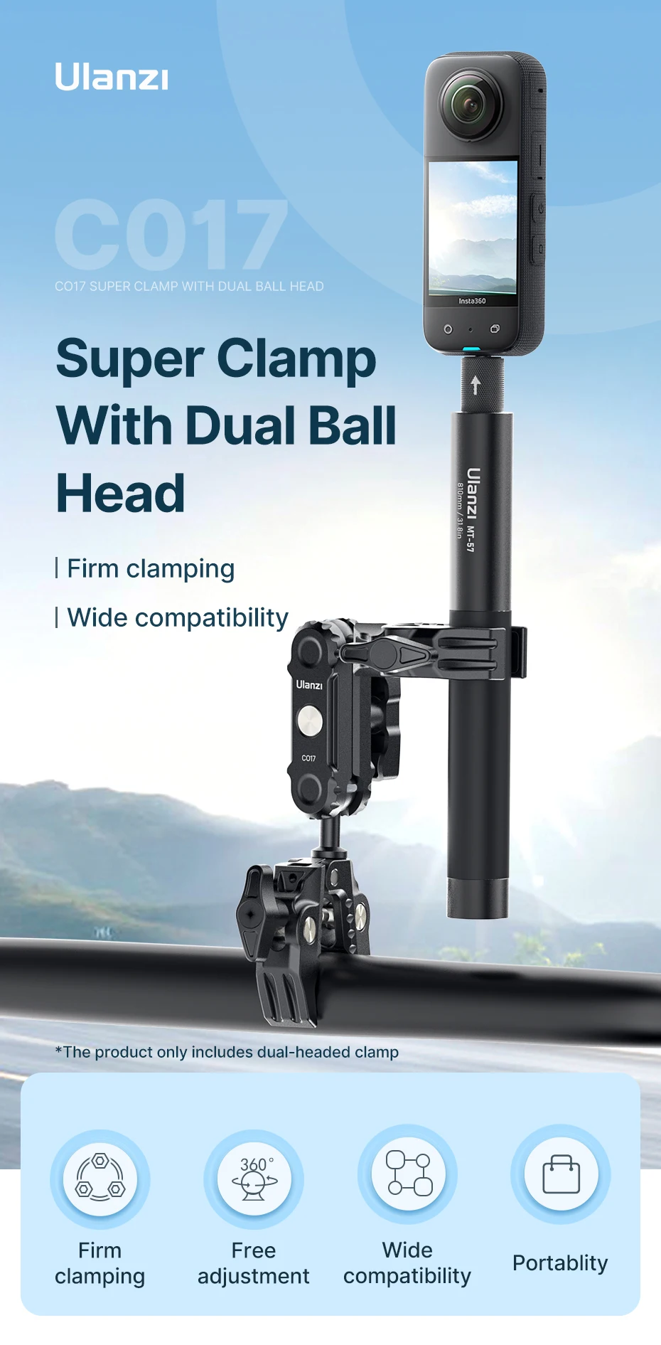 Comprar Ulanzi-abrazadera CO17 para Go Pro 11, 10, 9, 8, 7, 6, Insta360, brazo mágico, grabación de vídeo, Vlog de viaje