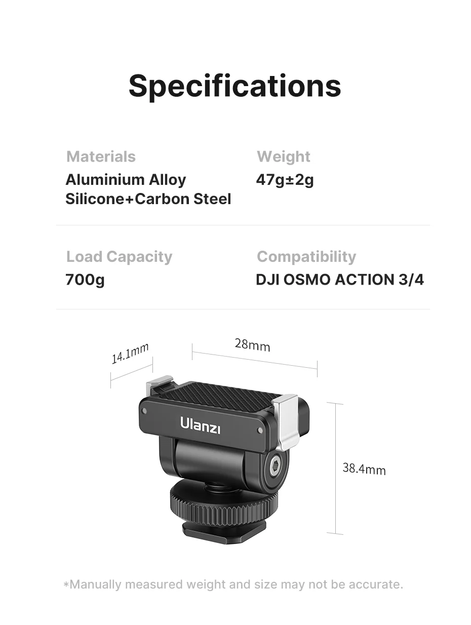 Adaptador de montaje de zapata fría Ulanzi CA22 para DJI OSMO ACTION 3/4