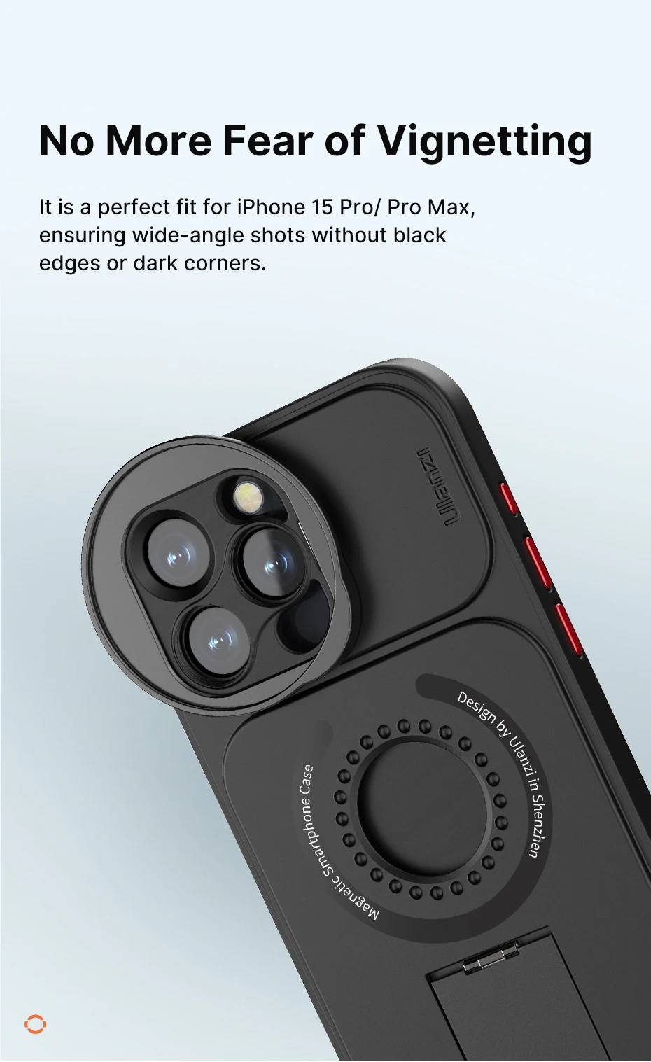 2. La viñeta No más miedo a: Es un ajuste perfecto para iPhone 15 Pro/ Pro Max, asegurando tomas de gran angular sin bordes negros ni esquinas oscuras.
