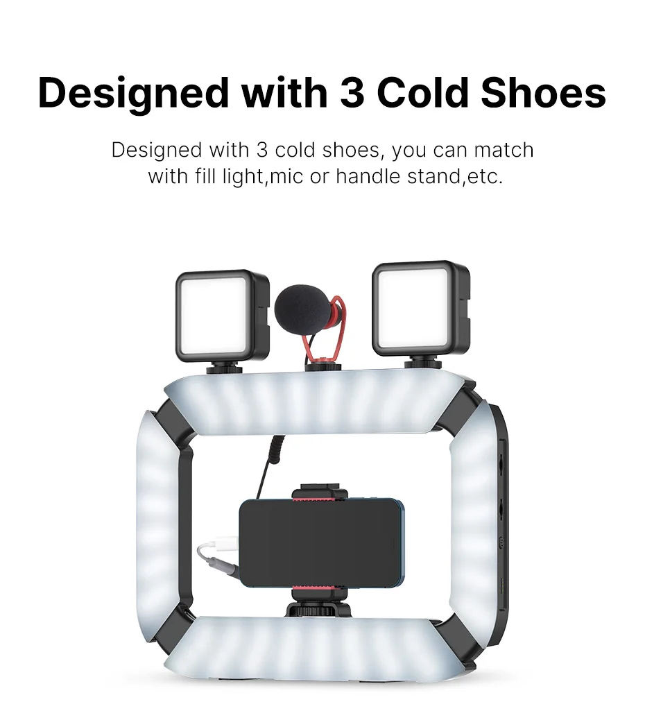 Comprar Ulanzi-Anillo de luz LED U200 recargable para teléfono inteligente, dispositivo de vídeo para grabación Vertical, DSLR, agarre para Vlog