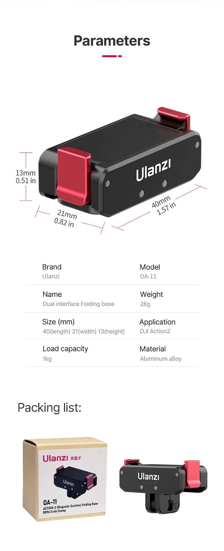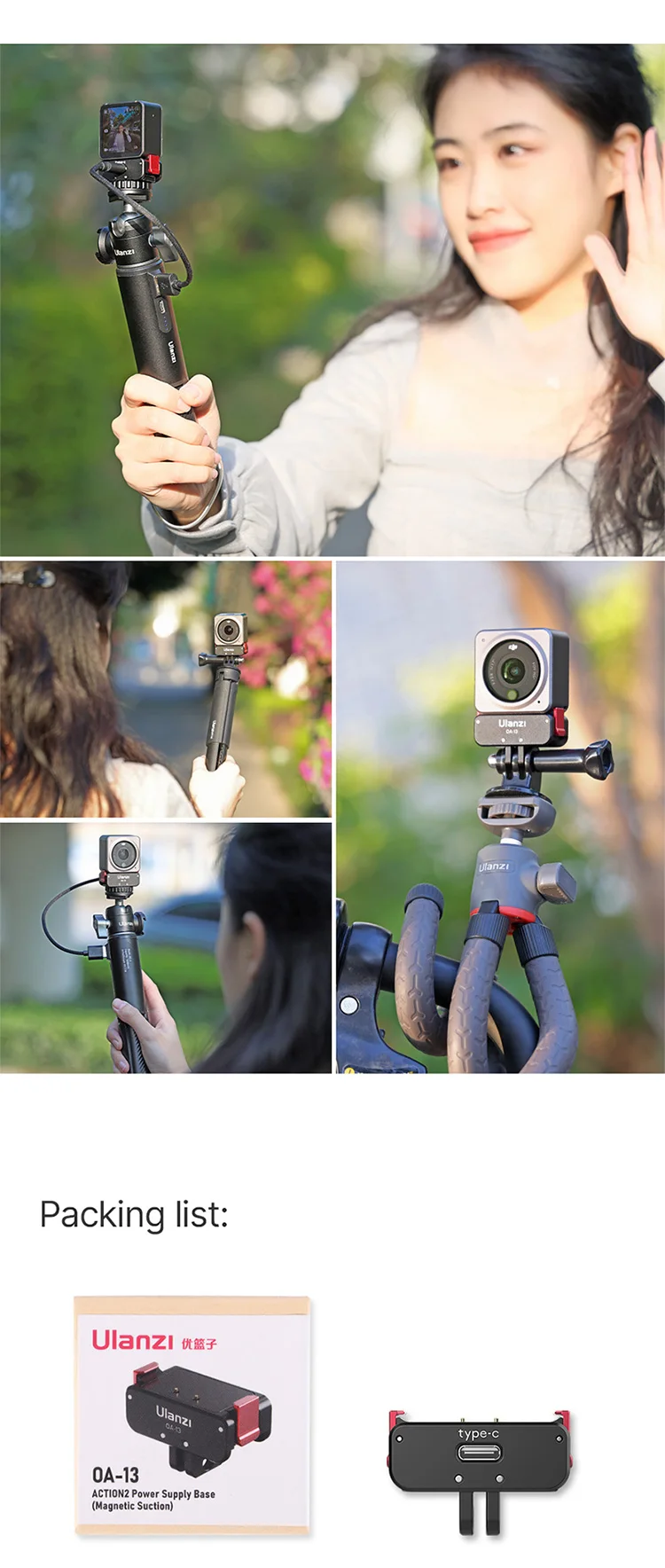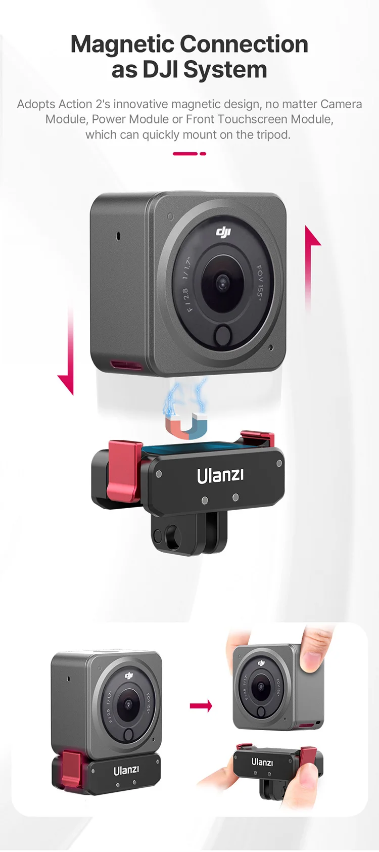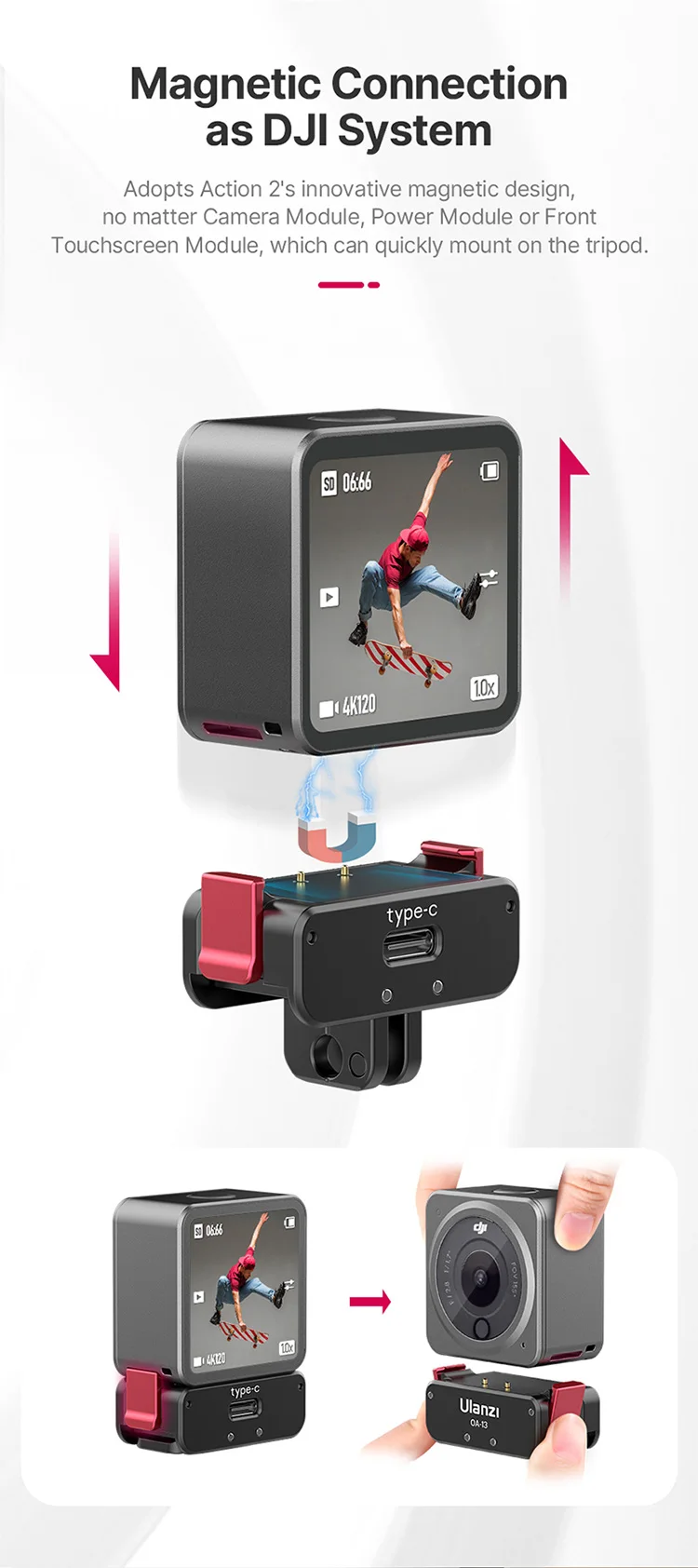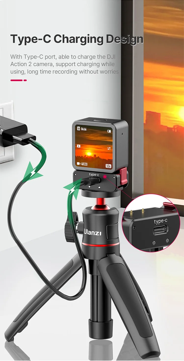 Comprar Ulanzi-Base de cargador magnético tipo C, puerto para Osmo Action 2 y 3, accesorios y Base Normal, 1/4, hembra