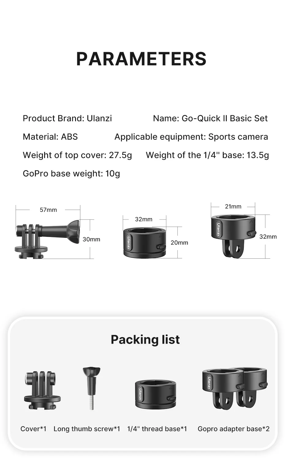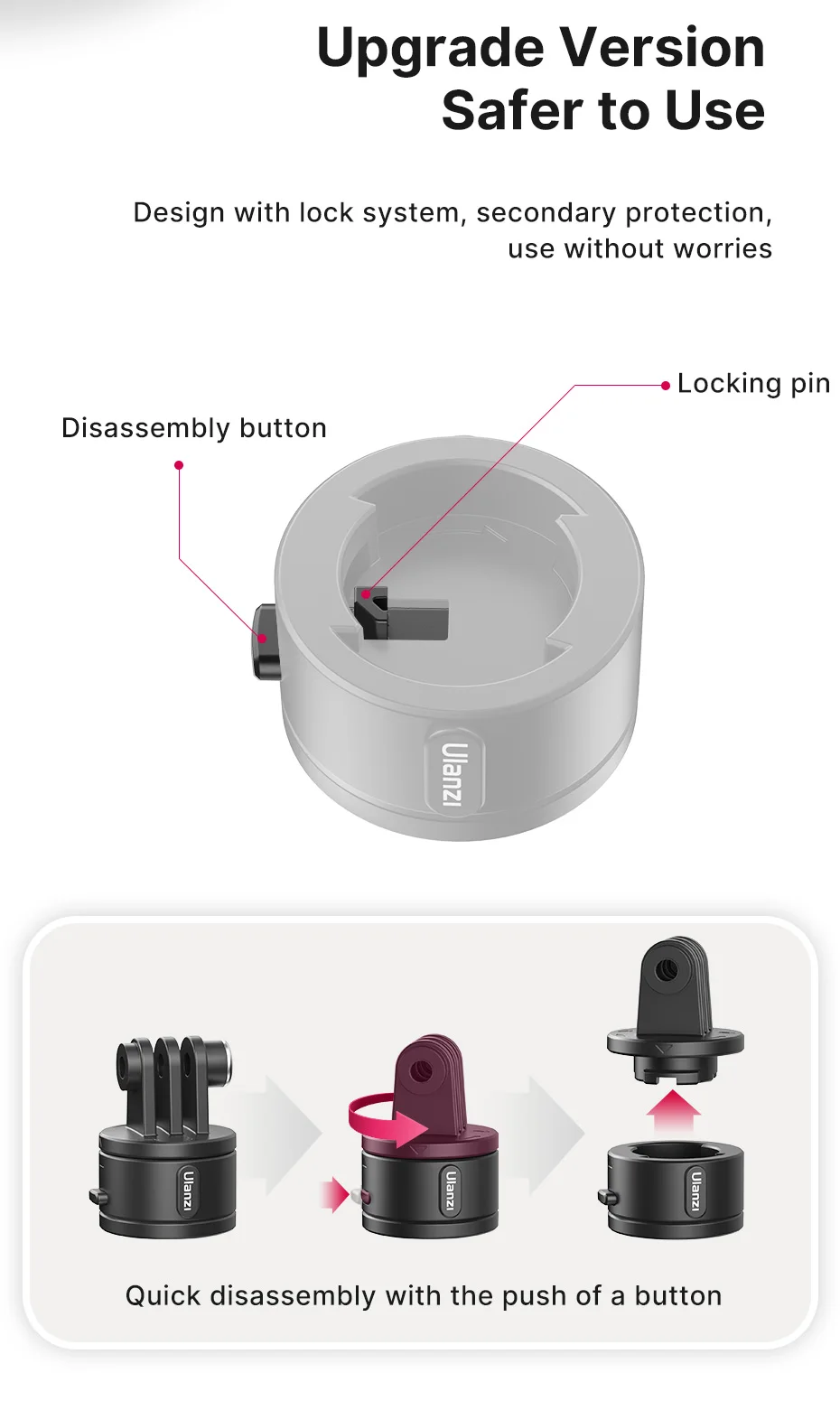 Ulanzi Base de montaje magnético de liberación rápida GoPro y adaptador de Base de montaje en trípode de 1/4 pulgadas para accesorios GoPro 12/11/10/Max/8/7/6/5/4