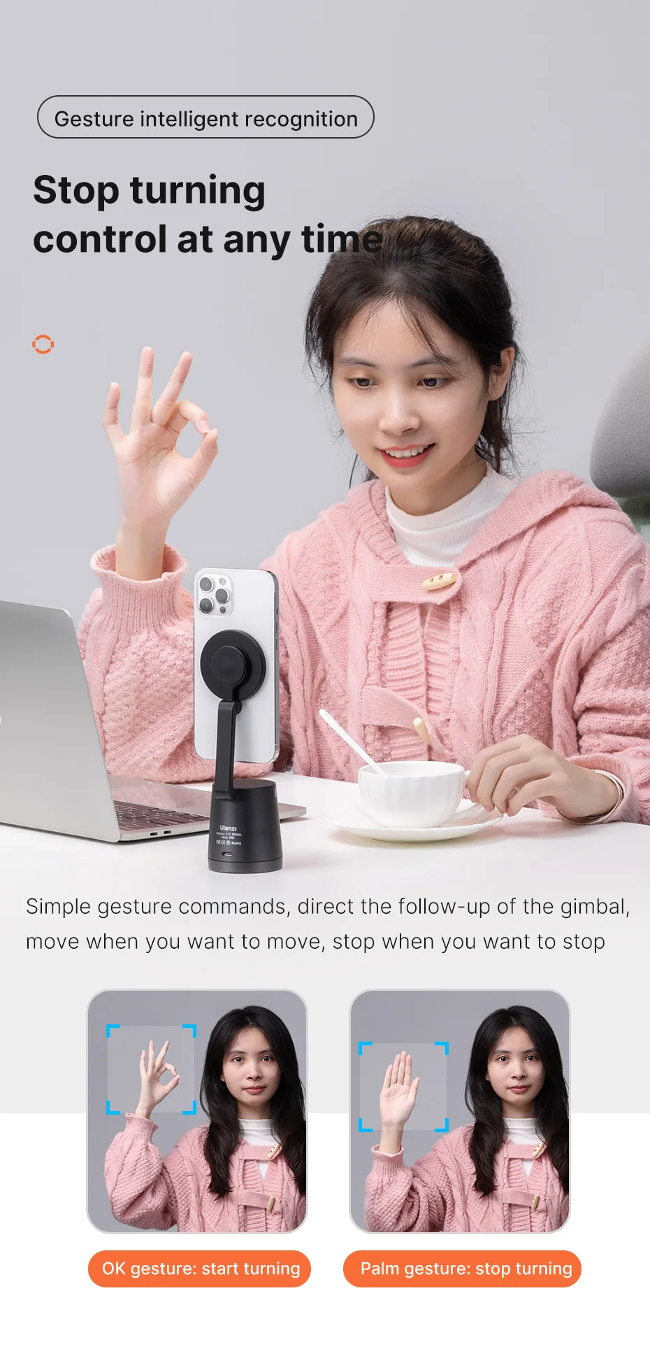 Comprar Ulanzi-cardán de seguimiento inteligente O-LOCK, soporte para teléfono con rotación Horizontal de 360 °, estabilizador para Vlog