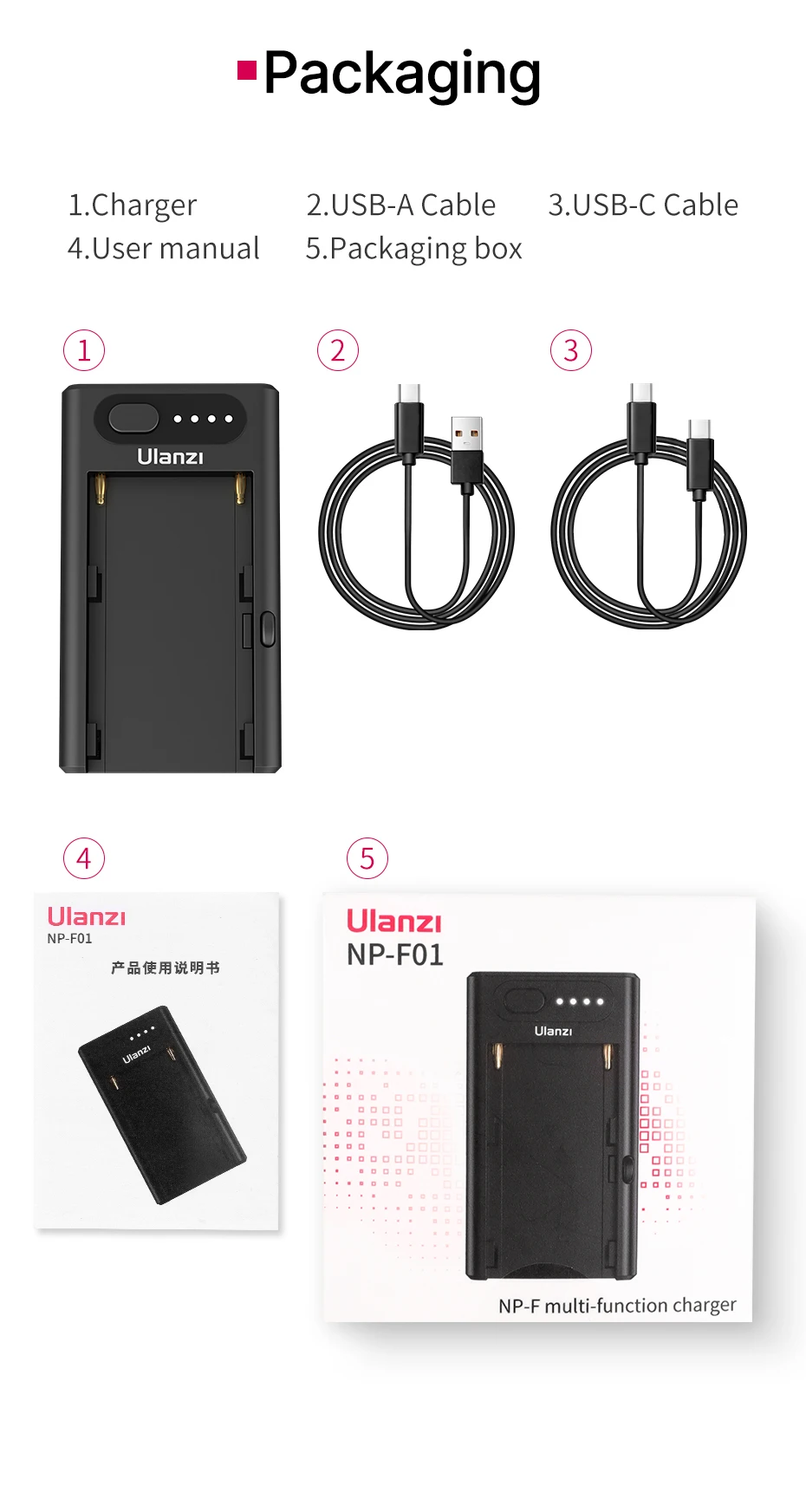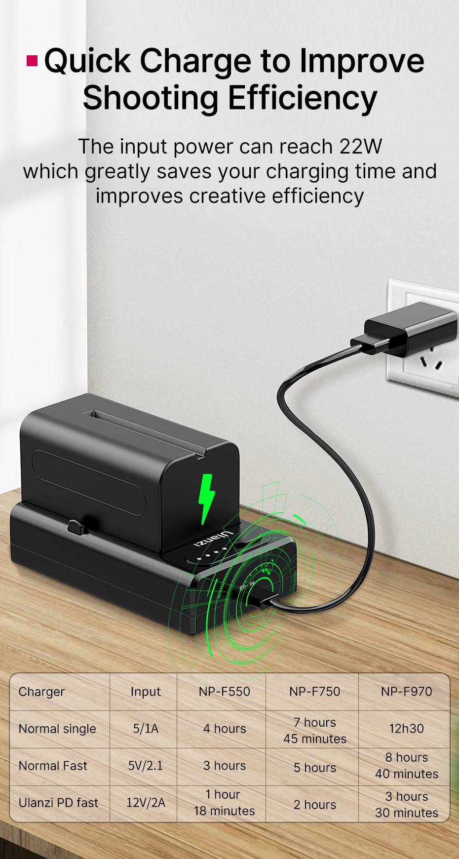 Comprar Ulanzi-cargador rápido multifuncional para Sony NP-F01/F750/F950, 22W, PD, QC, NP-F550, salida de USB-A USB-C