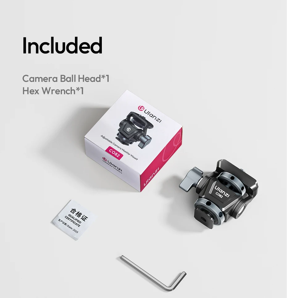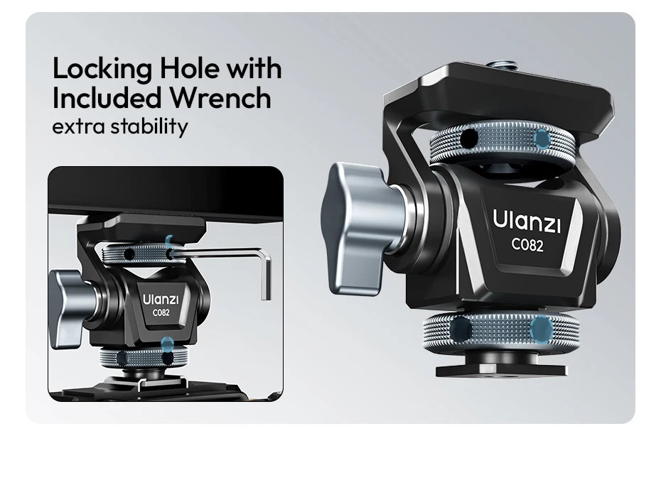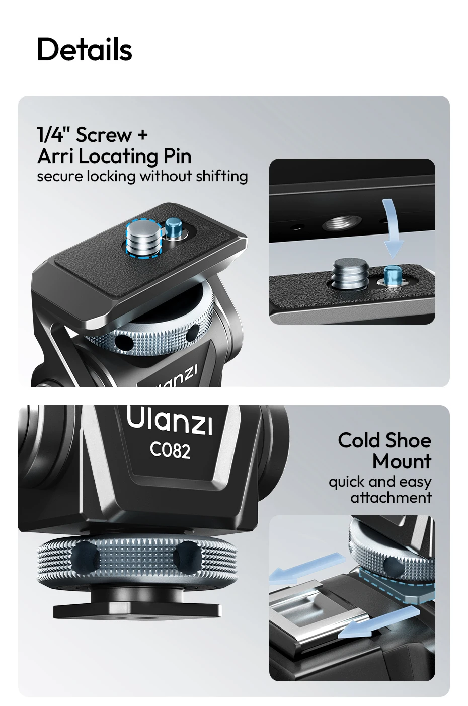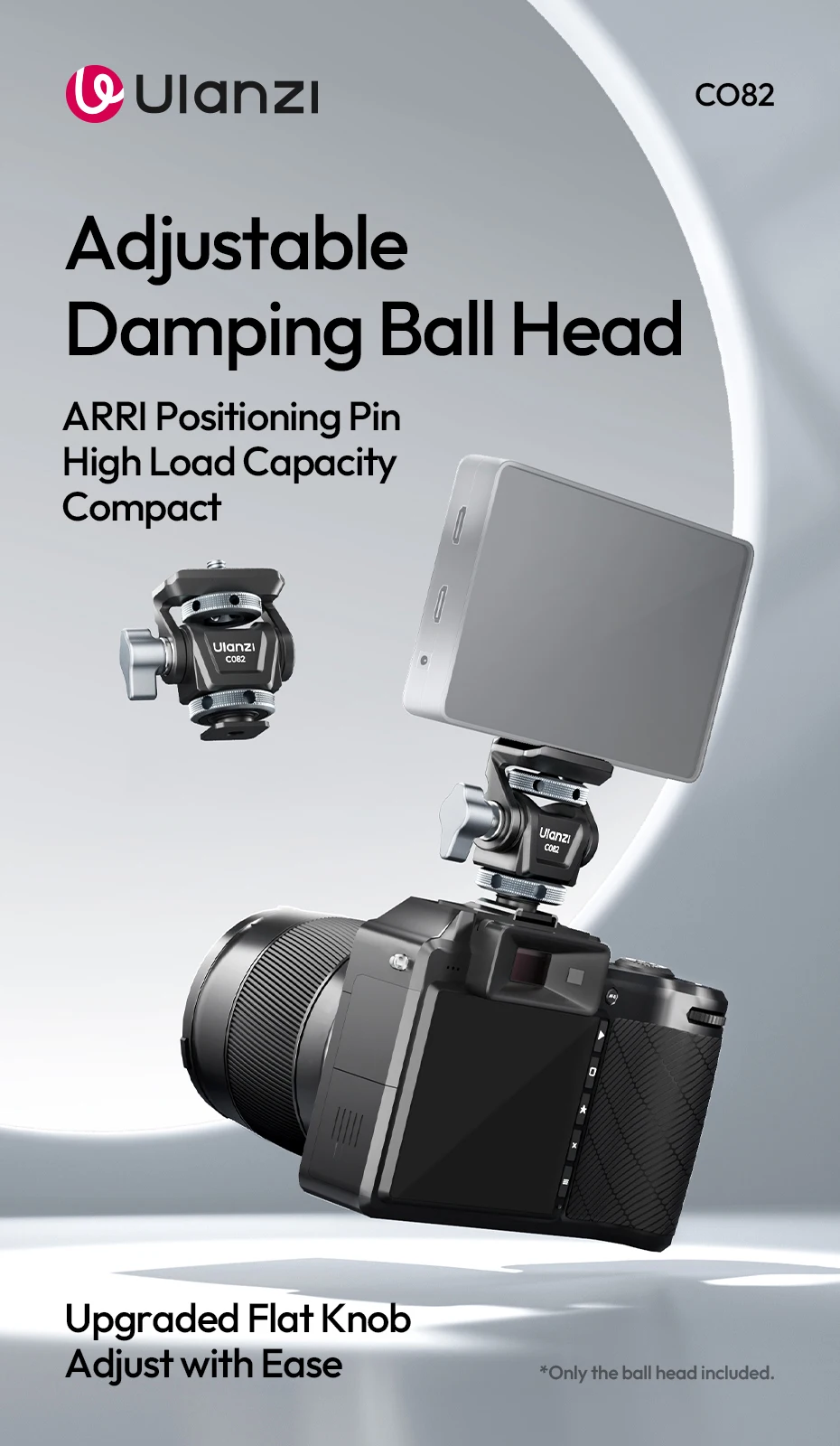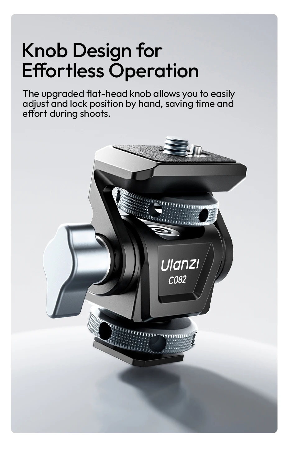 Ulanzi CO82 Cabezal de bola de amortiguación ajustable Perilla de cabeza plana Carga de 3 kg 360 ° Rotación con soporte de 1/4" para fotografía de cámara con trípode