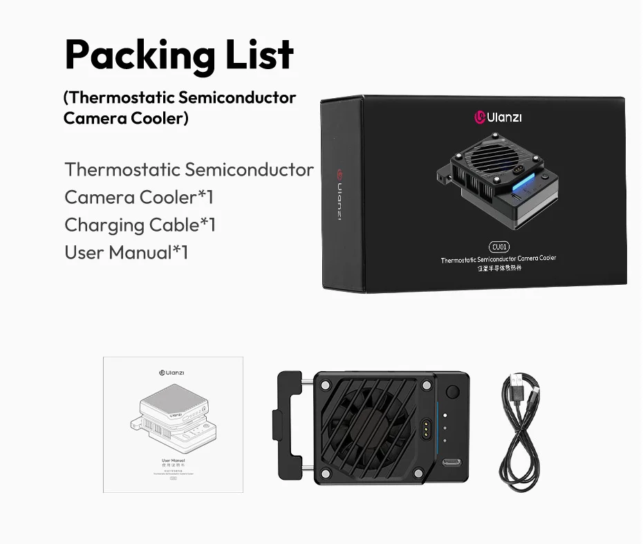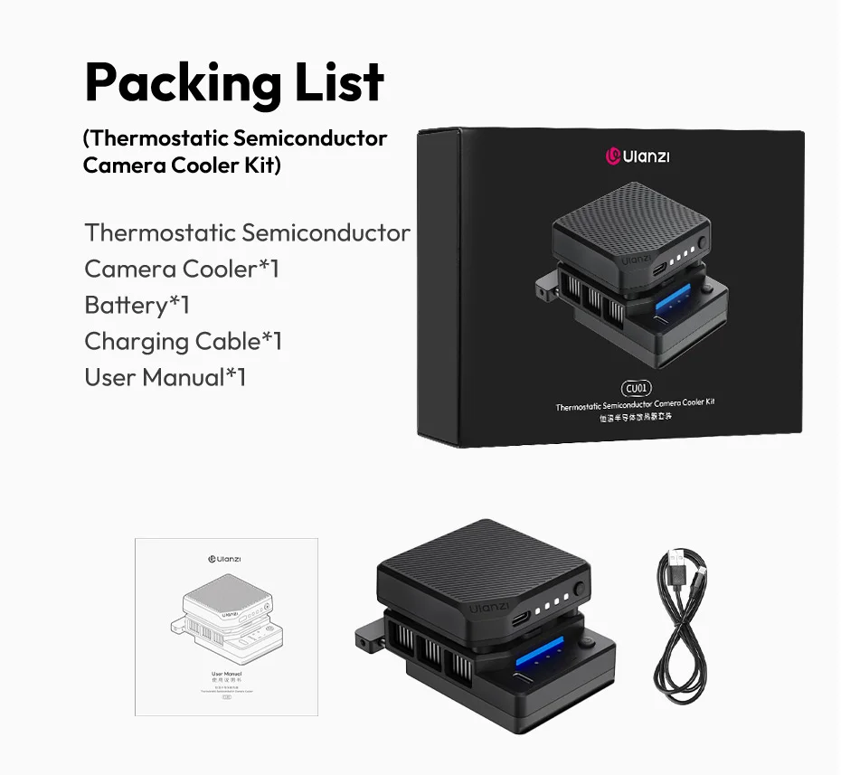 Ulanzi CU01 Thermostatic Semiconductor Camera Cooler Camera Cooling Fan Radiator 4K Recording Kit Heat Sink for Sony Canon Nikon FUJIFILM LUMIX