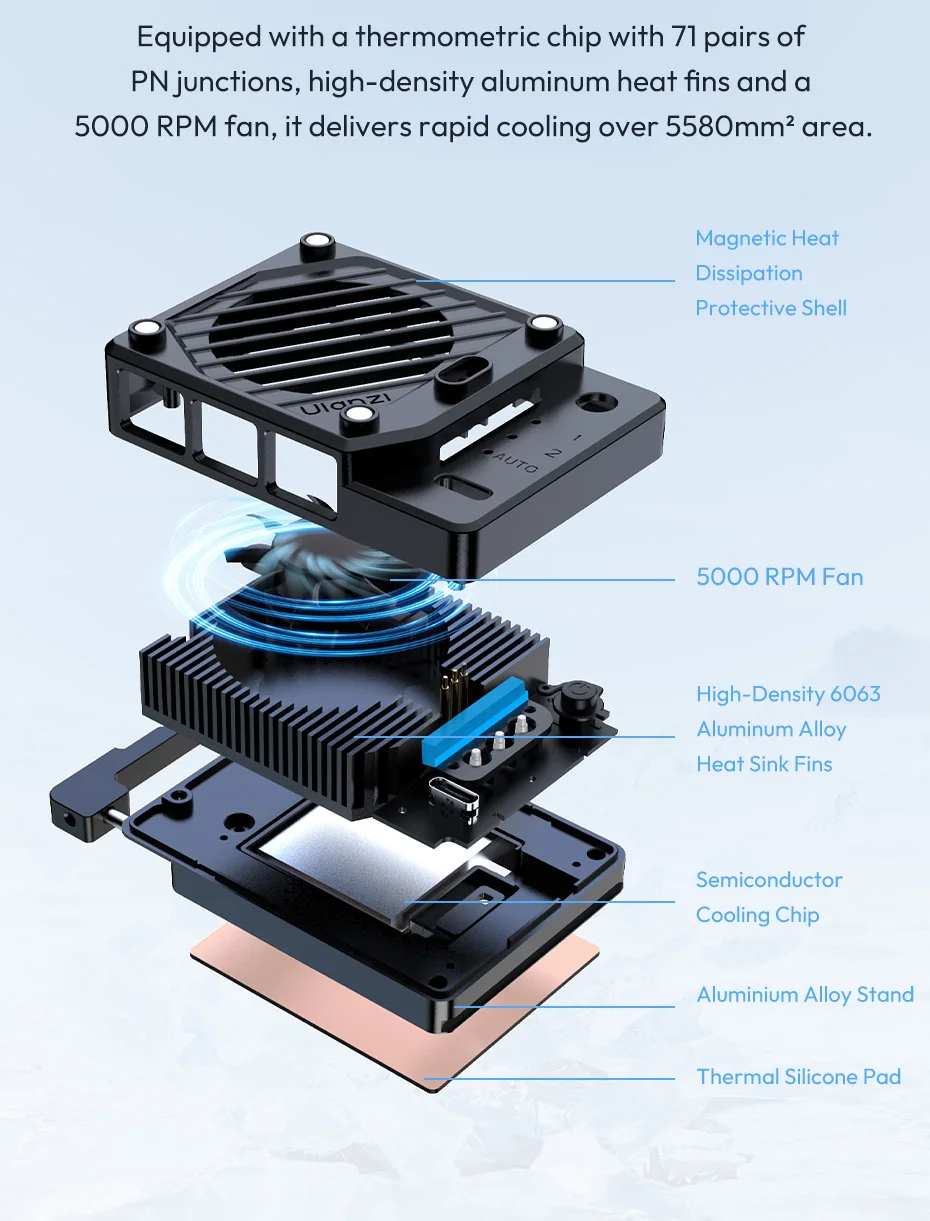 Semiconductor Chip+5000 RPM | Charging while Using | Spring Mount Design | 8°C Intelligent Temperature Control | 3 Modes Of Operation | Real-Time Monitoring