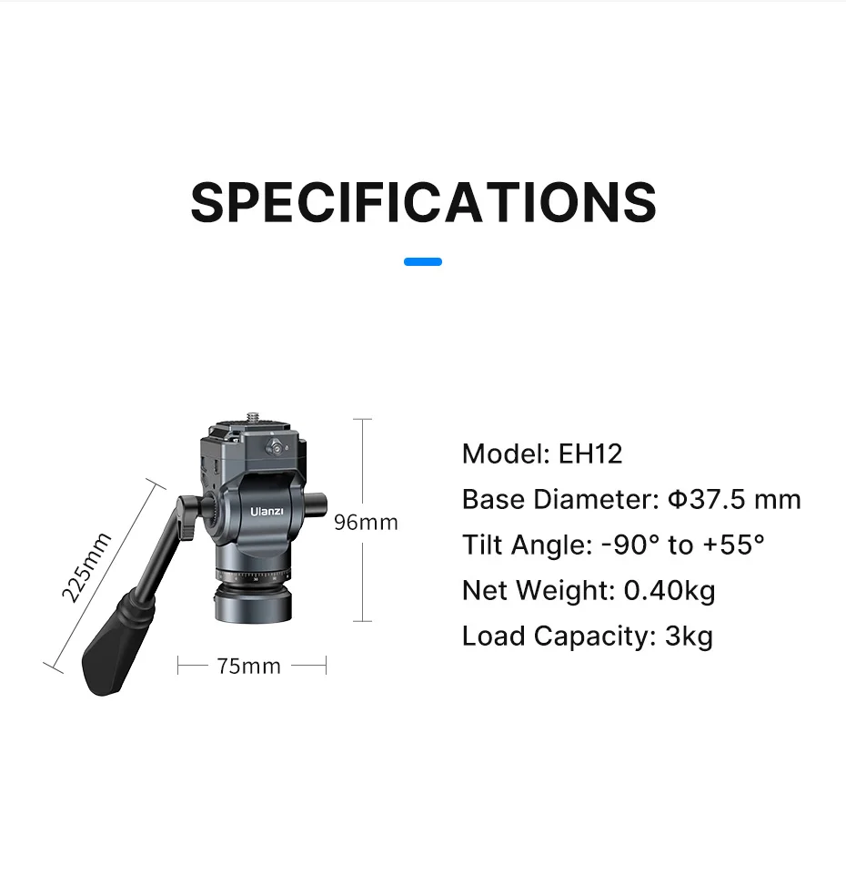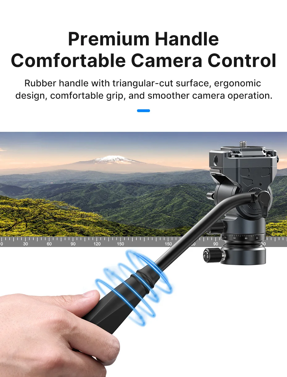 Consejos: Capacidad de carga recomendada para el cabezal del trípode ≤ 3 kg. Incompatible con la placa de liberación rápida Arca.