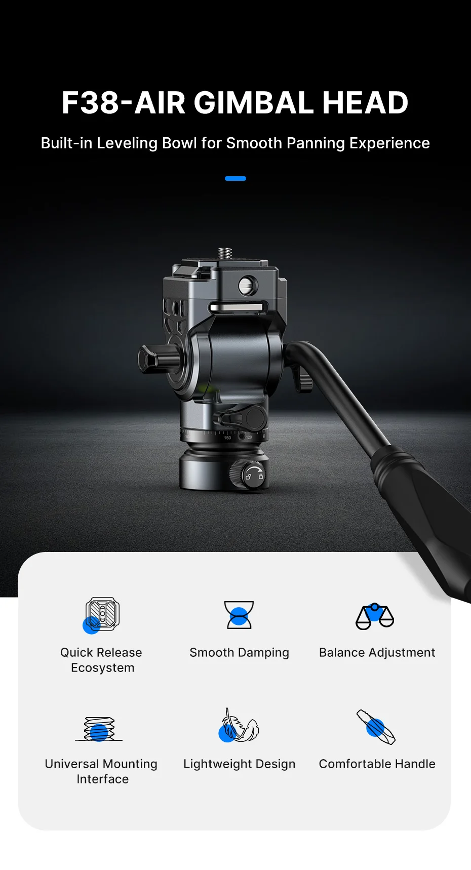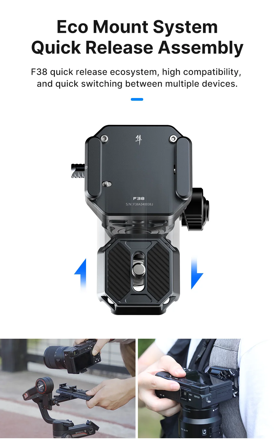 1.Sistema de montaje ecológico, conjunto de liberación rápida: ecosistema de liberación rápida F38, alta compatibilidad y cambio rápido entre múltiples dispositivos.