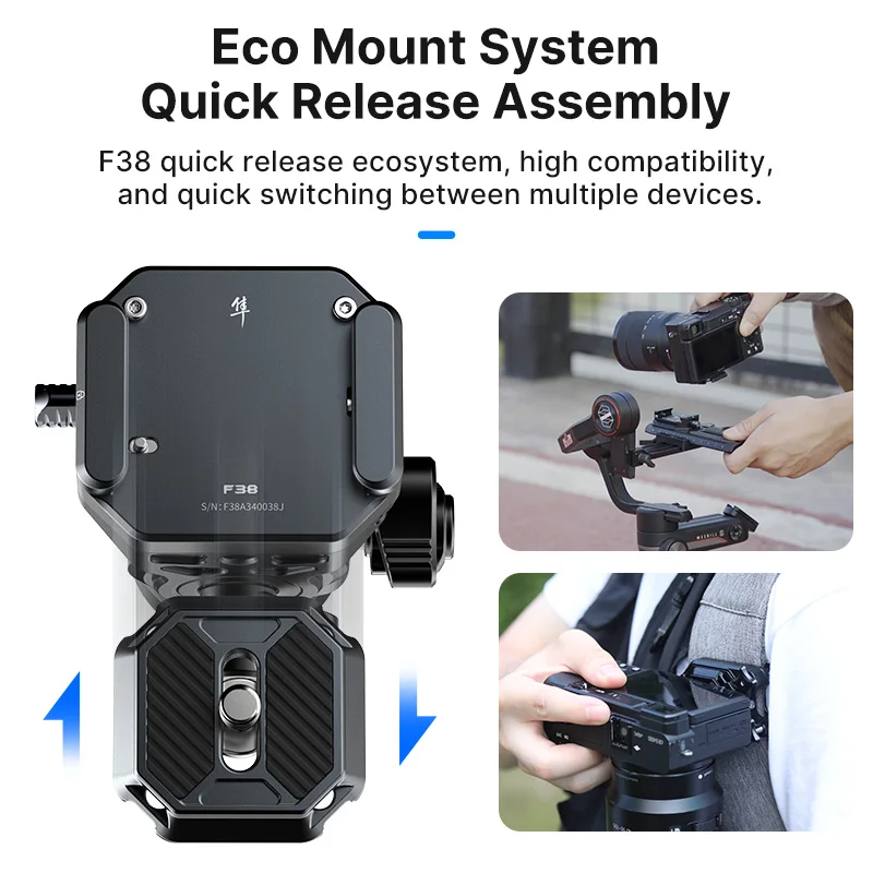 1.Sistema de montaje ecológico, conjunto de liberación rápida: ecosistema de liberación rápida F38, alta compatibilidad y cambio rápido entre múltiples dispositivos.