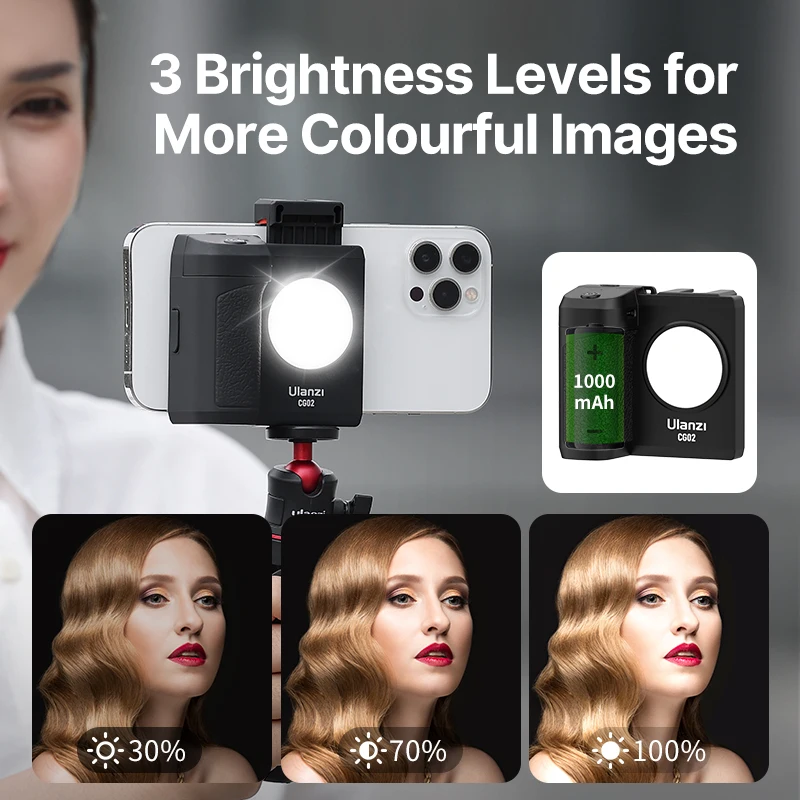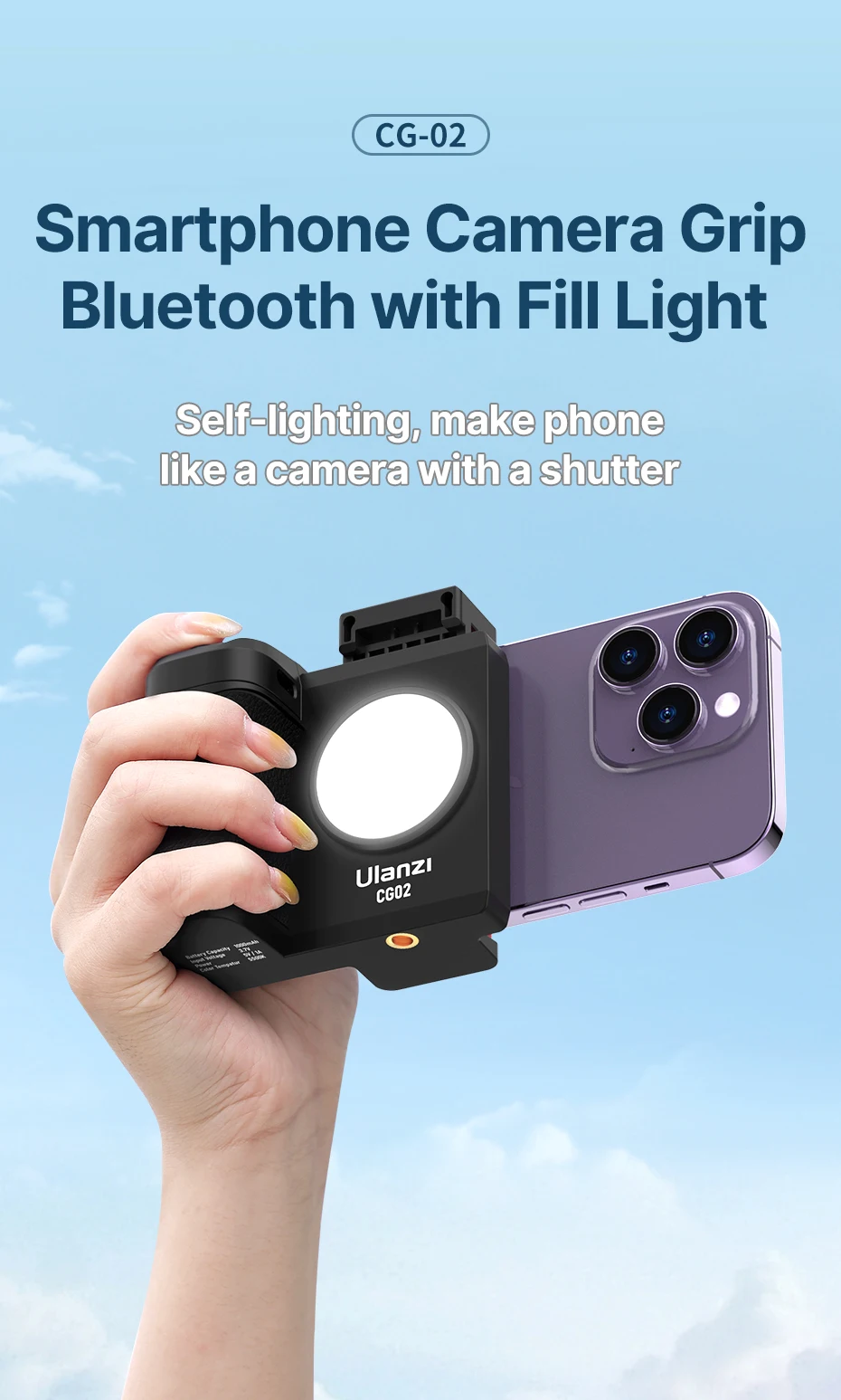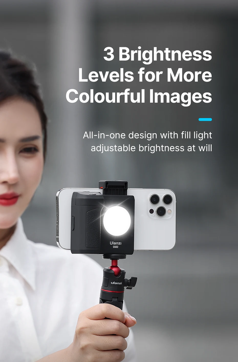 Comprar Ulanzi-empuñadura inalámbrica para selfi CG02, con Bluetooth, luz de relleno de 5500k, estabilizador de cámara y fotos para teléfono inteligente