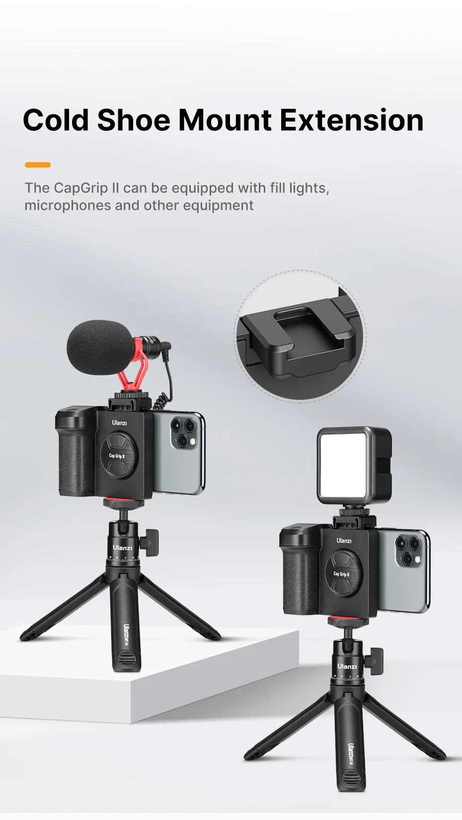 ULANZI-empuñadura de refuerzo para selfi, dispositivo de mano con Control remoto por Bluetooth, obturador de teléfono para fotografía de Smartphone, modelo CG01 CapGrip II