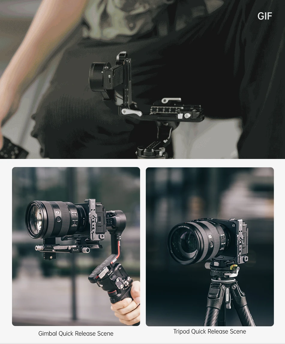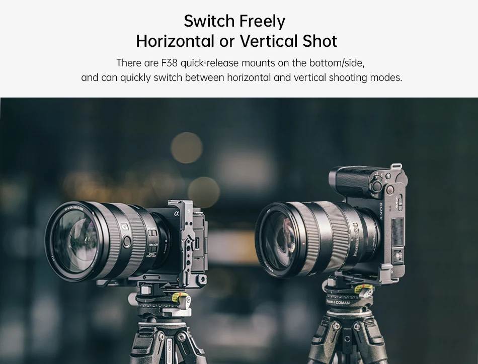 3. Cambia libremente, toma horizontal o vertical: Hay monturas de liberación rápida F38 en la parte inferior/lateral, y puede cambiar rápidamente entre los modos de disparo horizontal y vertical.