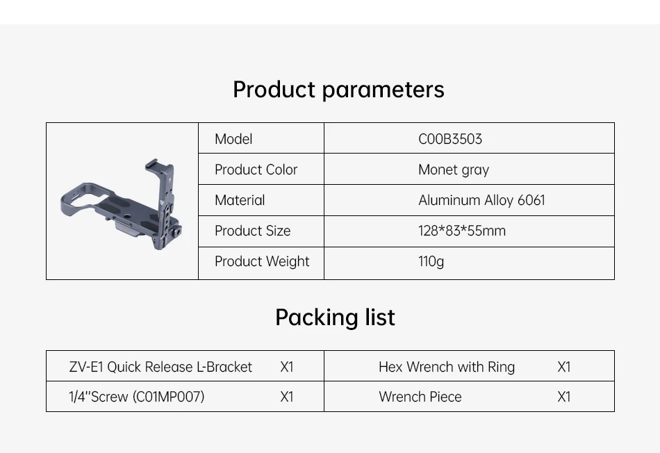 Comprar Ulanzi-Falcam F22, F38 y F50, soporte en L de liberación rápida para cámara Sony ZV-E1 DSLR