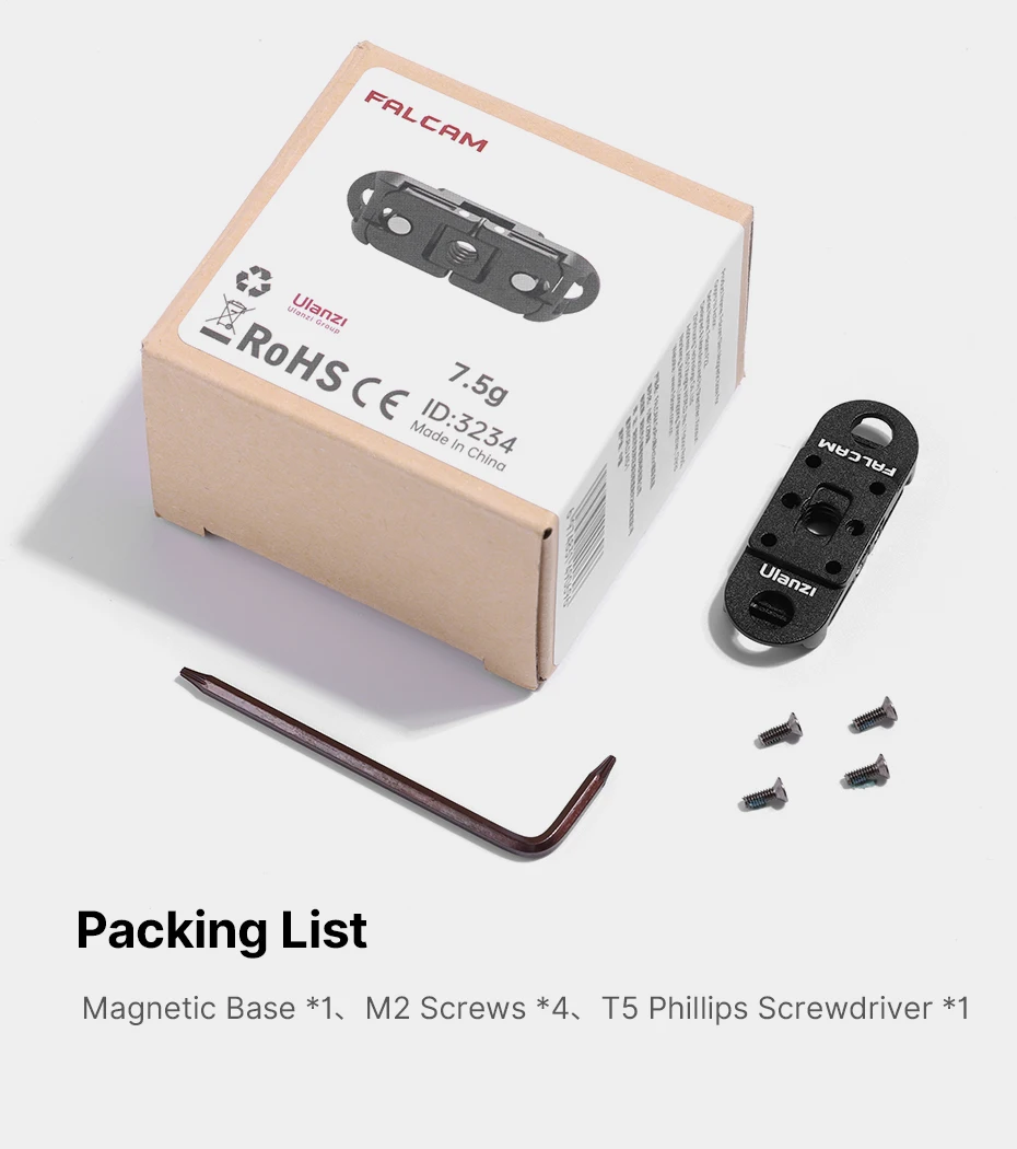 Lista de embalaje: base magnética * 1, tornillos M2 * 4, destornillador Phillips T5 * 1